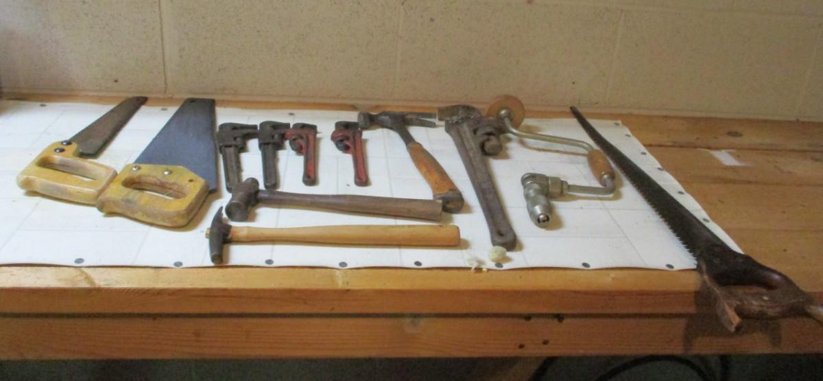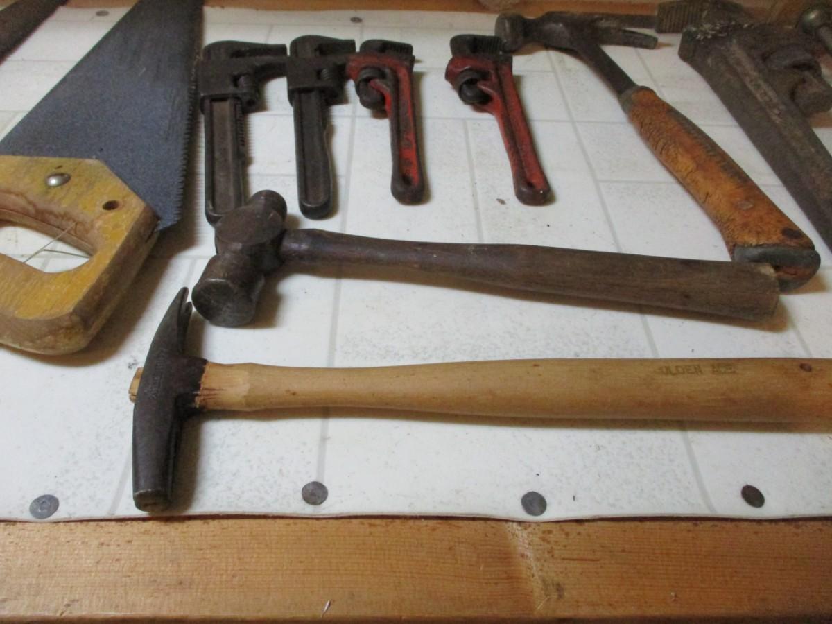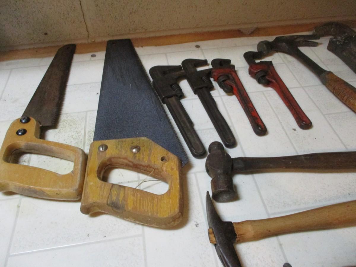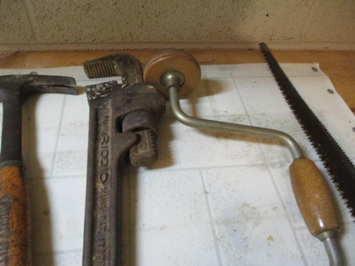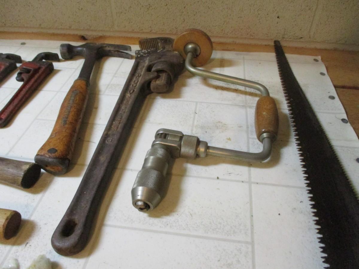 Vintage Hand Tools Saw With Teeth On Both Sides Wrenches Hammers Drill Saws (TR)