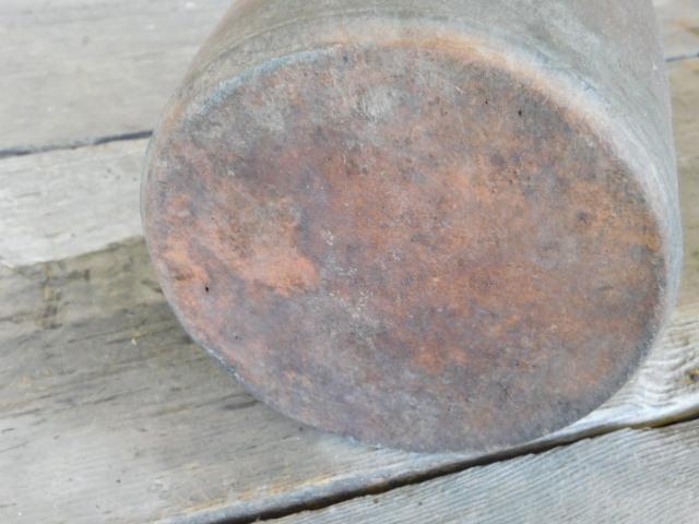 Vintage Hand Turned Glazed Pottery Whiskey Jug Unmarked has some chips around the mouth of jug
