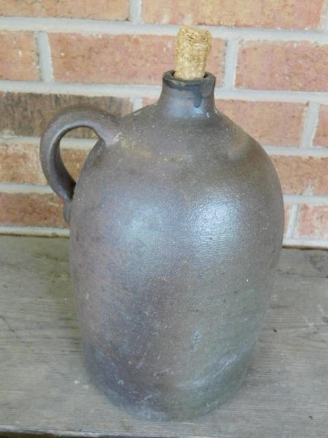 Vintage Hand Turned Glazed Pottery Whiskey Jug Unmarked