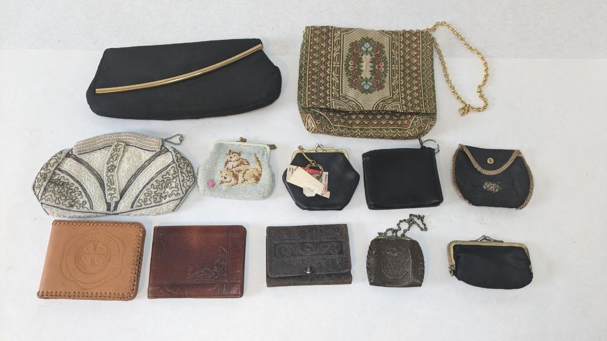 A lovely variety of 30s through mid-century bags including two handbeades pieces, a couple of seemingly unused leather wallets, lots of stuff never even used.