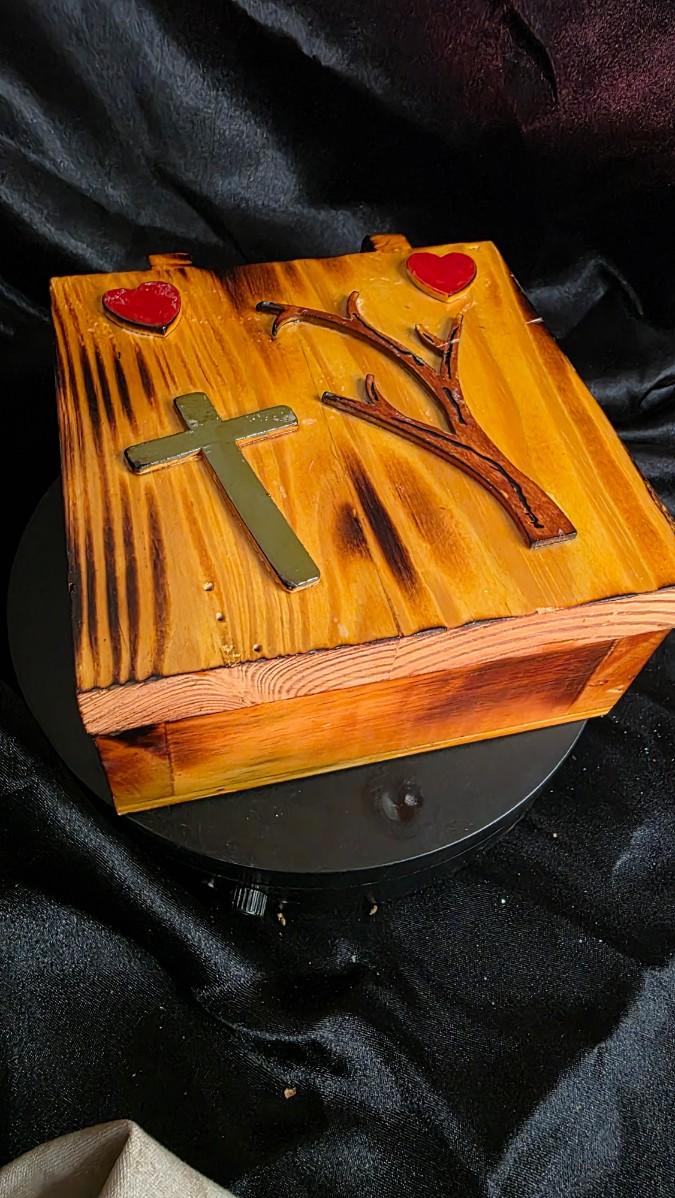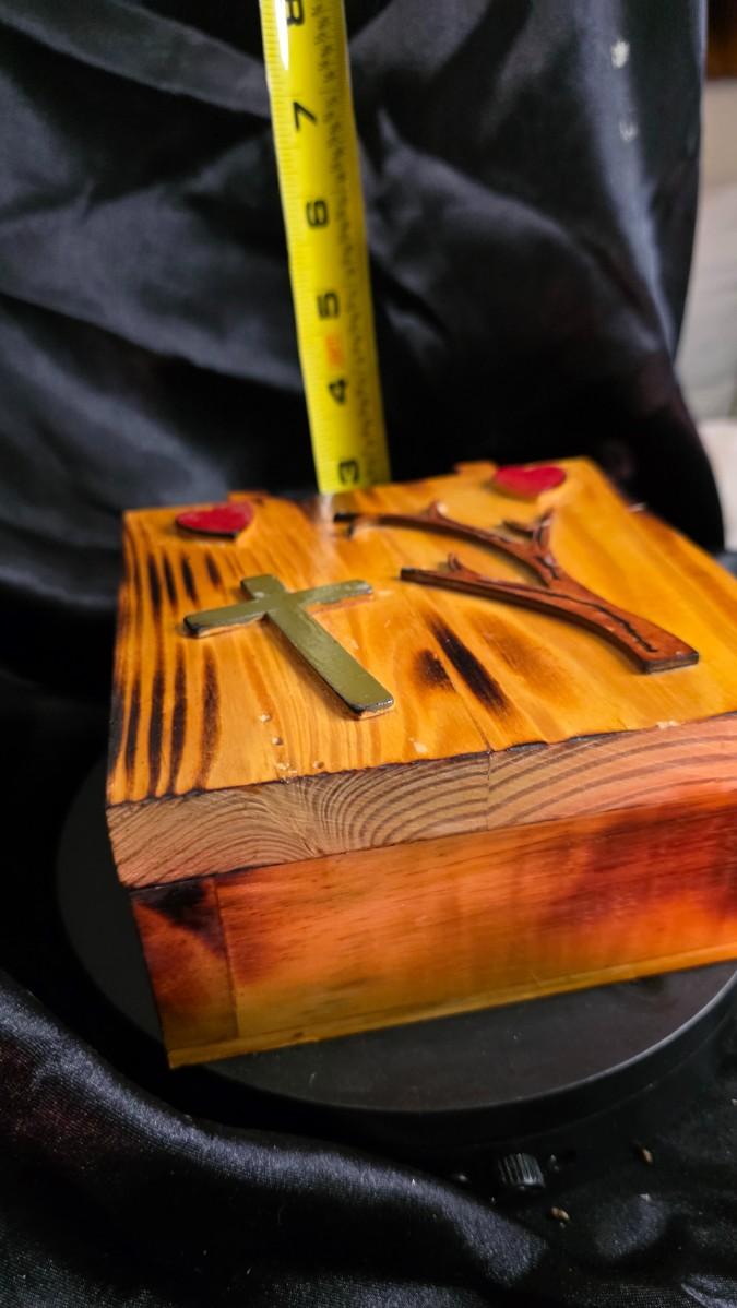 A true piece of handmade spiritual décor, this box brings instant warmth to dressers, nightstands, or prayer tables—ideal as a jewelry keeper, baptism gift, or quiet reminder of faith in everyday life. For lovers of rustic Christian art, collectors of carved wood boxes, or anyone who believes the simplest symbols carry the deepest meaning, it's a humble treasure ready to safeguard both objects and memories.