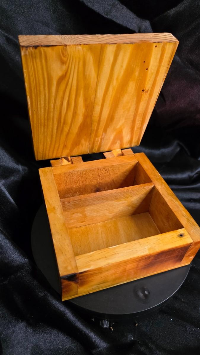 From a quiet corner of heartfelt craftsmanship, where faith and folk art meet, this rustic wooden trinket box arrives as a touching testament to love and devotion. The lid is beautifully carved with a simple Christian cross flanked by two red hearts and delicate twig branches, all set against the natural grain of the wood that has been lovingly aged to a warm, honeyed patina. The sturdy construction, dovetail joints, and hinged lid open to reveal a spacious interior perfect for rings, rosaries, coins, or small keepsakes, while the honest wear and darkened edges speak of years spent holding someone’s most cherished tokens.