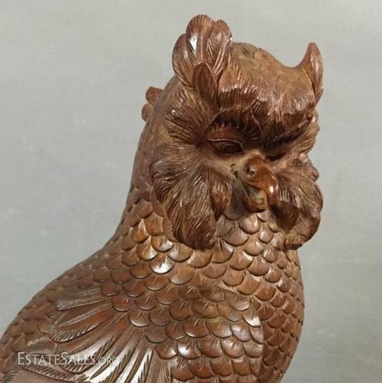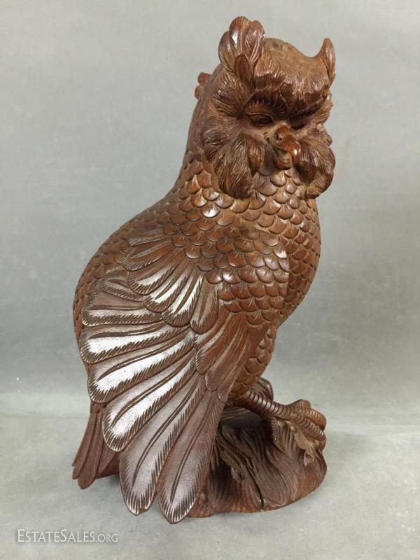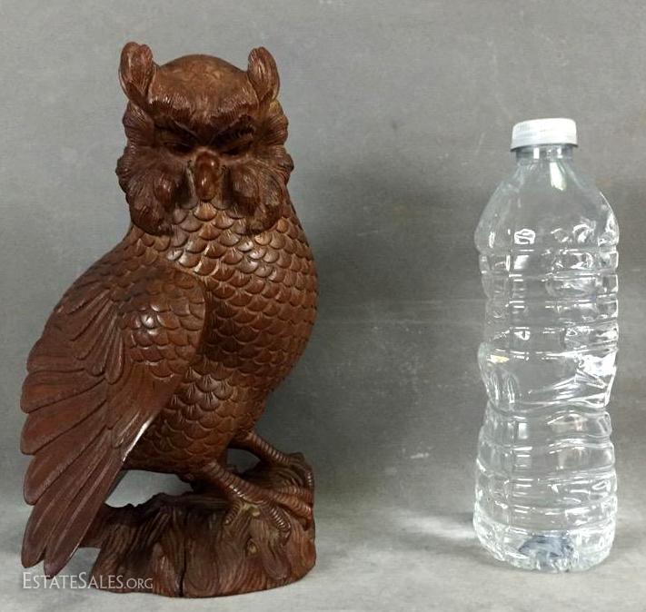 Vintage Hand-Carved wooden Owl sculpture, marked "N. Sacara" on bottom, 9" tall
