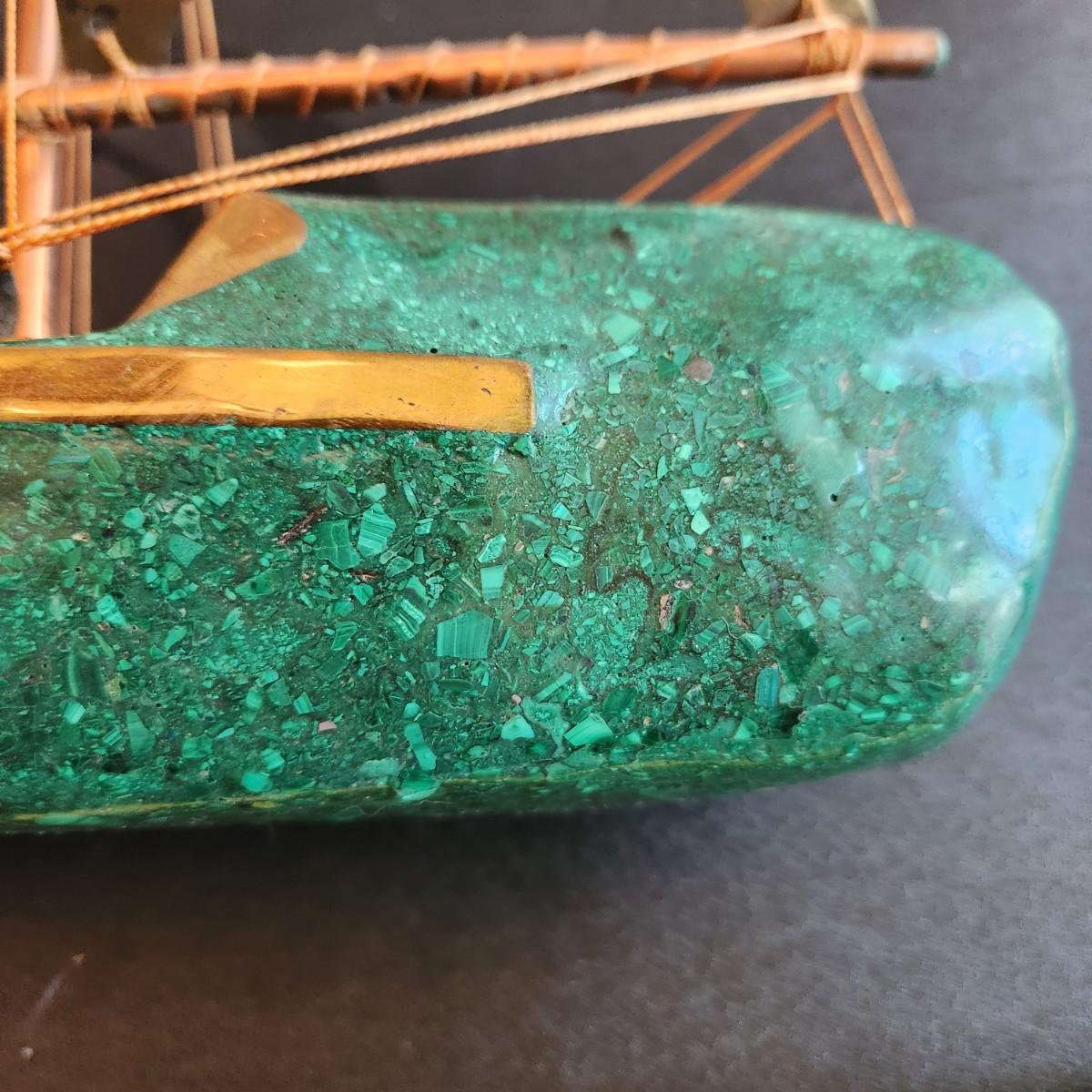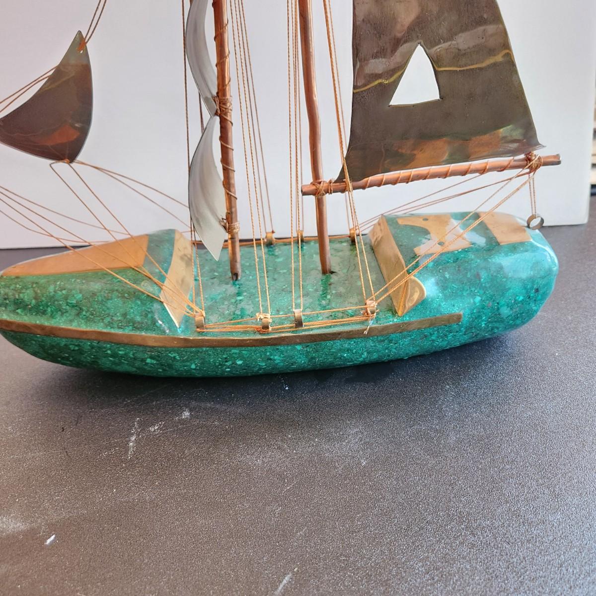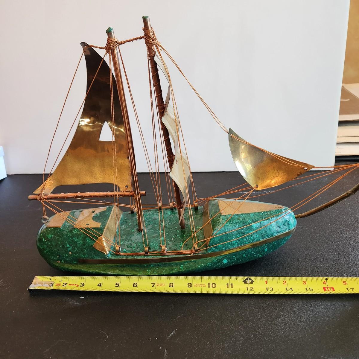 Vintage Handcrafted Sailboat Green Stone & Brass