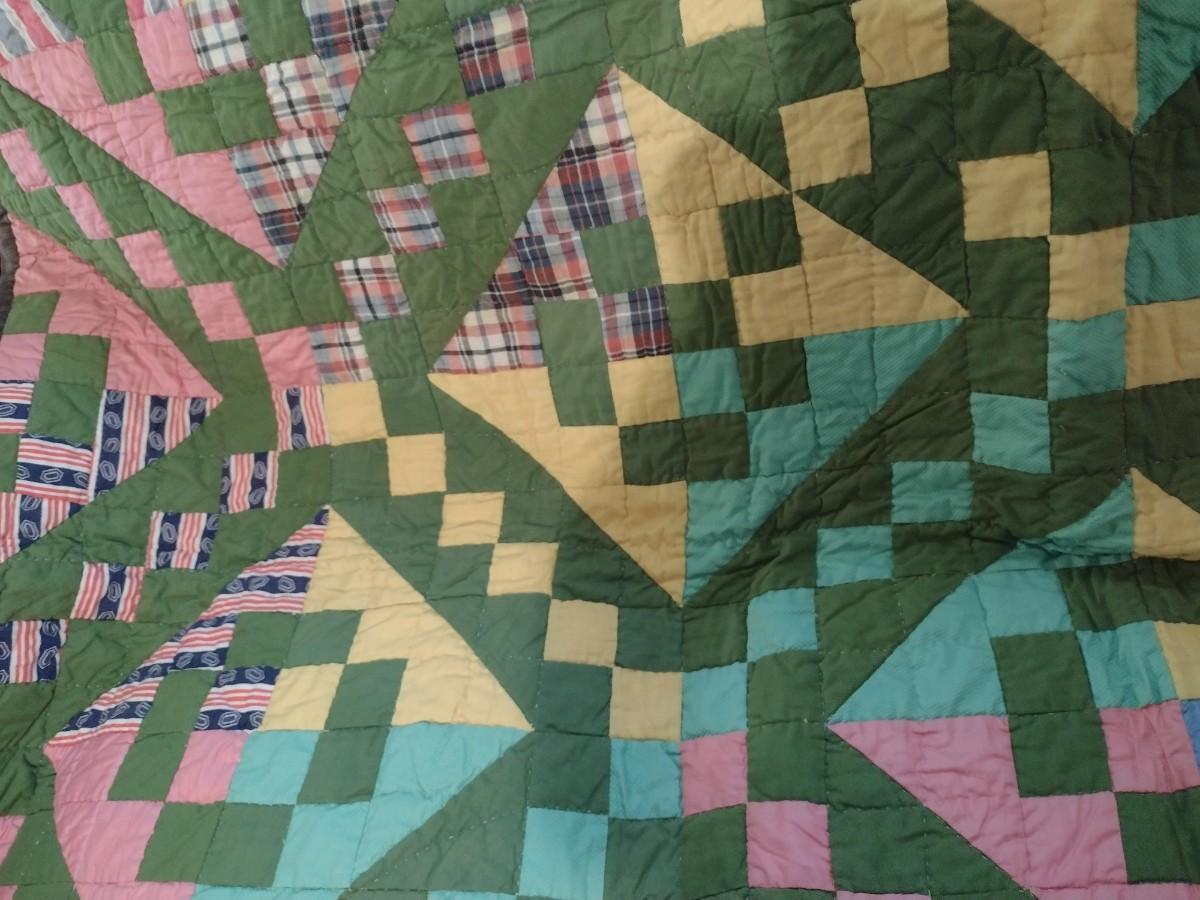 Vintage Hand-Cut, Hand-Sewn Quilt: Approx. 64" x 78". No noticeable staining.