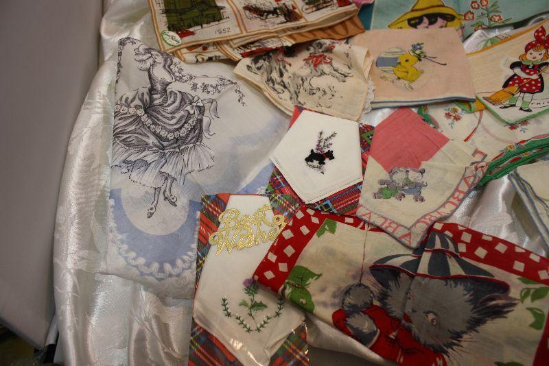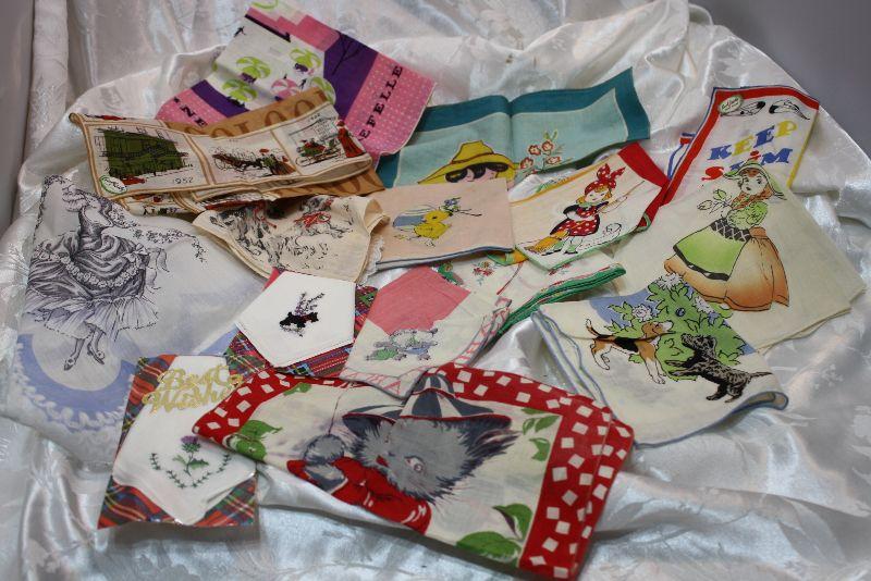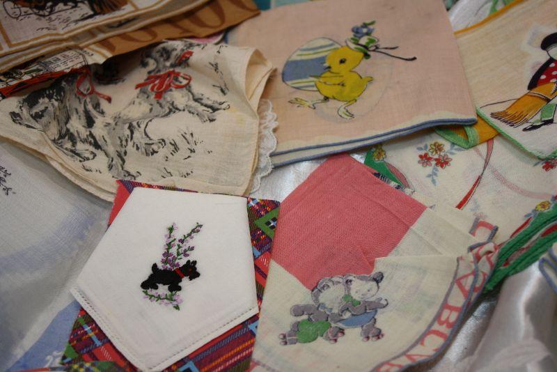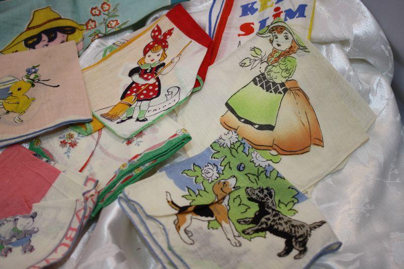Vintage Handkerchief lot including Carol Stanley, animals, children