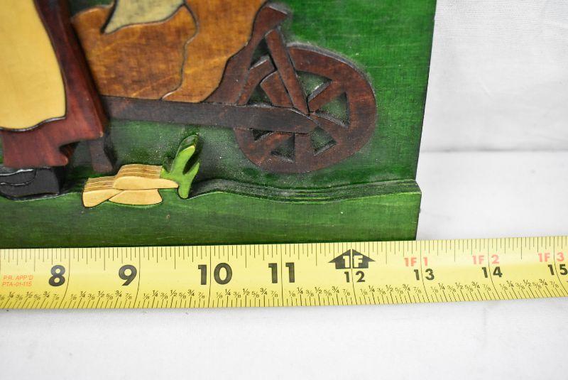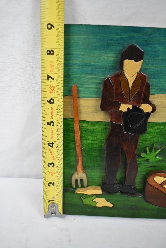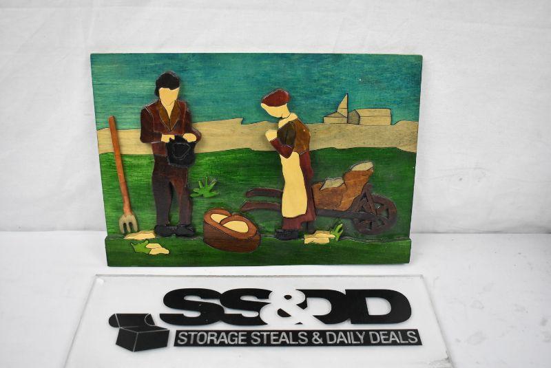 Vintage Handmade 3D Wood Picture, Julie Foley, Folk Art Farm Couple w/Baby, Ireland