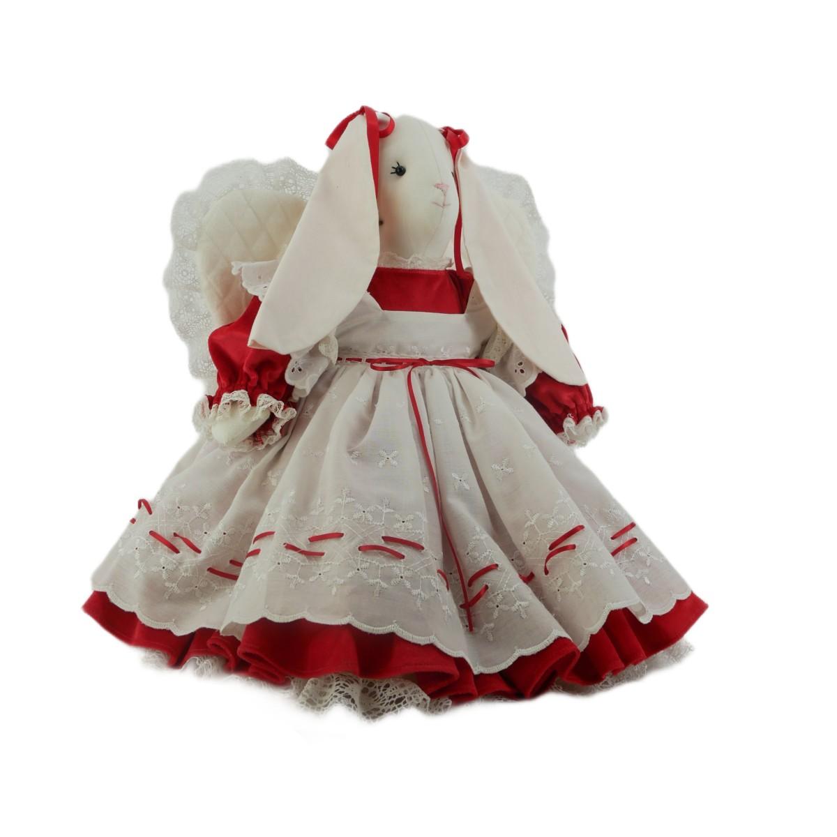 Vintage handmade angel bunny rabbit plush with detachable wings. So much work went into making this plush and her dress! Amazing quality and she is soooo cute! Stand is not included. She stands about 17" tall.