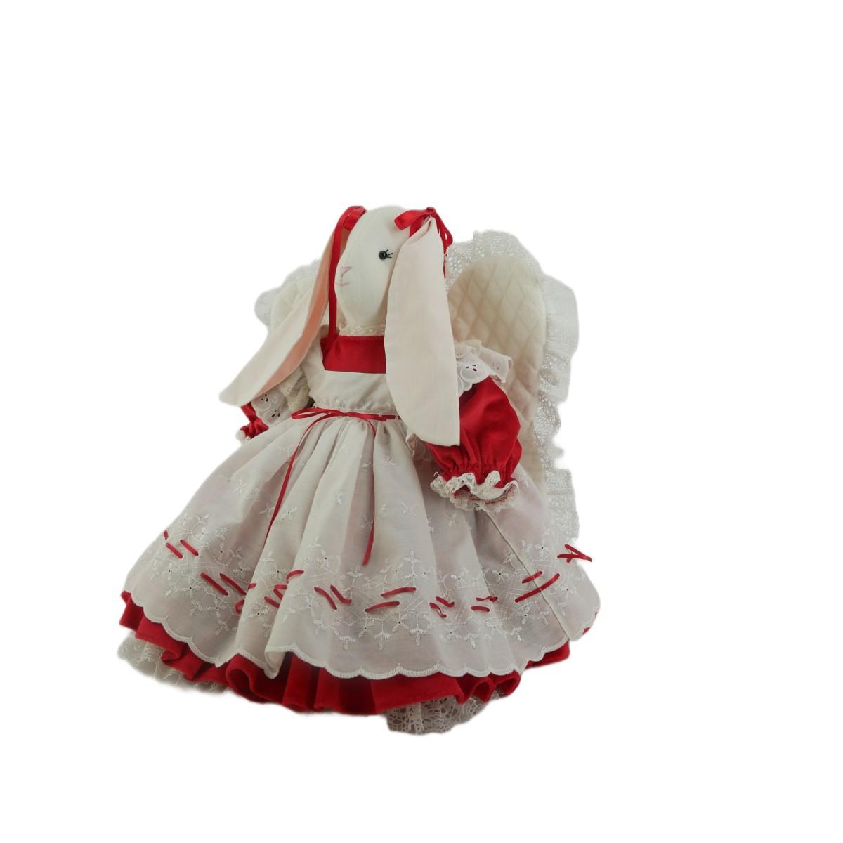 Vintage handmade angel bunny rabbit plush with detachable wings. So much work went into making this plush and her dress! Amazing quality and she is soooo cute! Stand is not included. She stands about 17" tall.