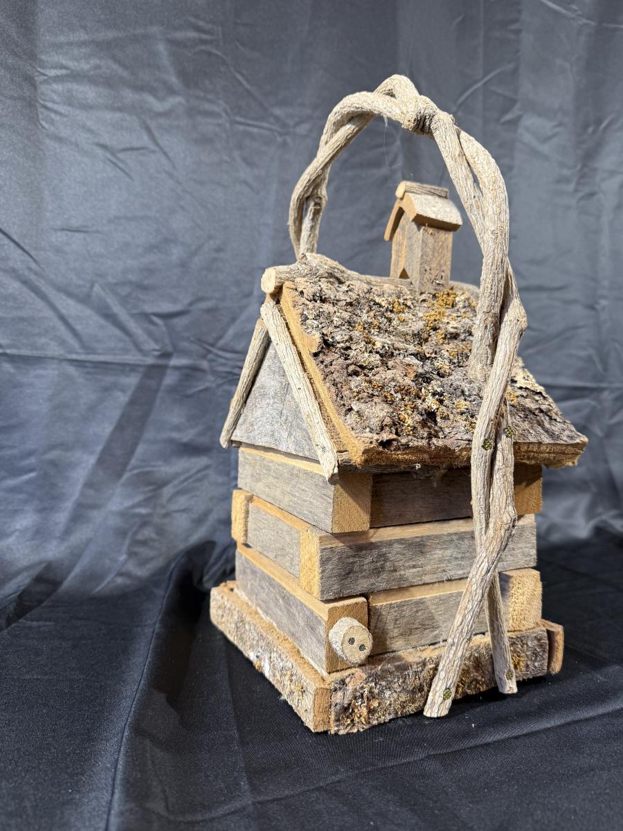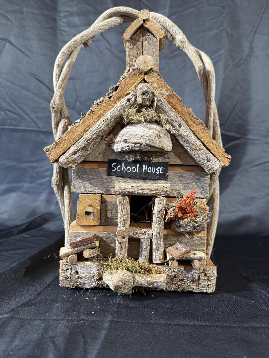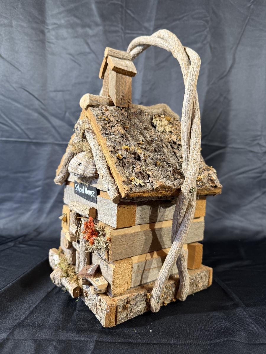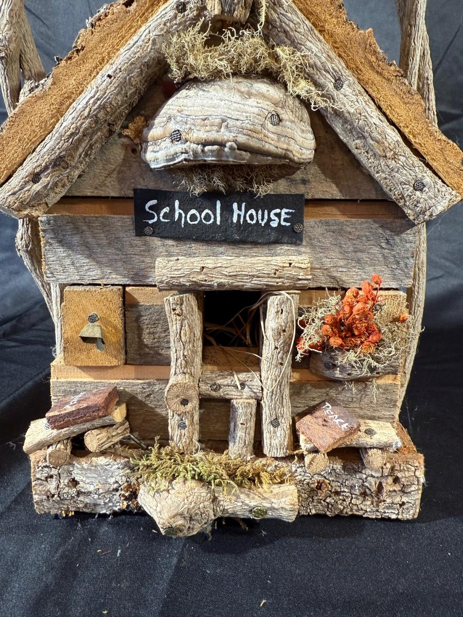 This is a beautiful handmade birdhouse in the form of a School House. This was an inside piece and is in amazing condition. Please review photos. Measurements are in the photos.