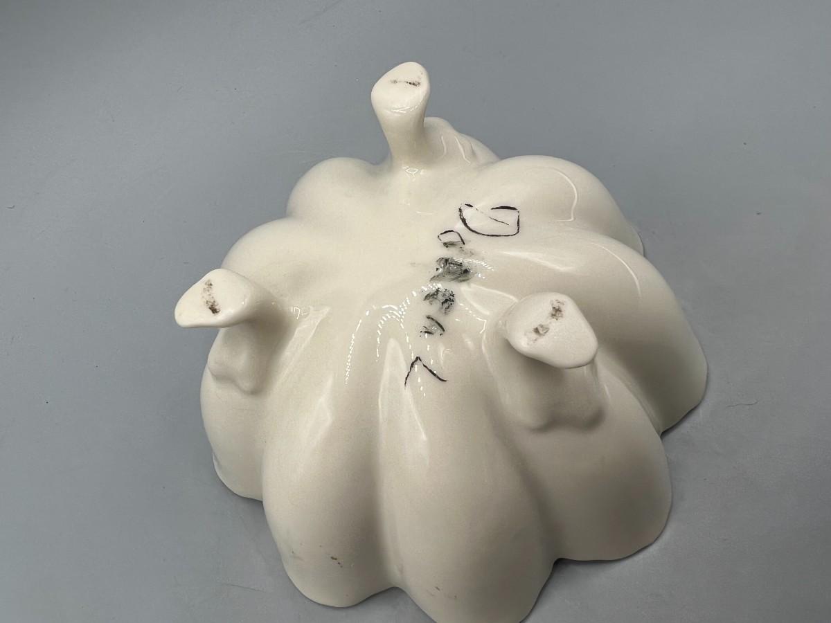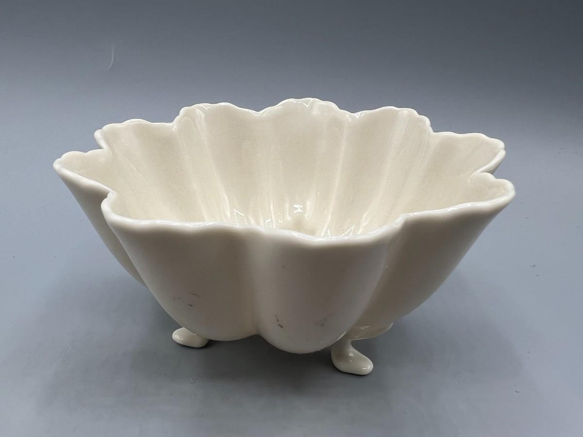 Vintage Handmade Ceramic Scalloped Footed Trinket Dish Bowl