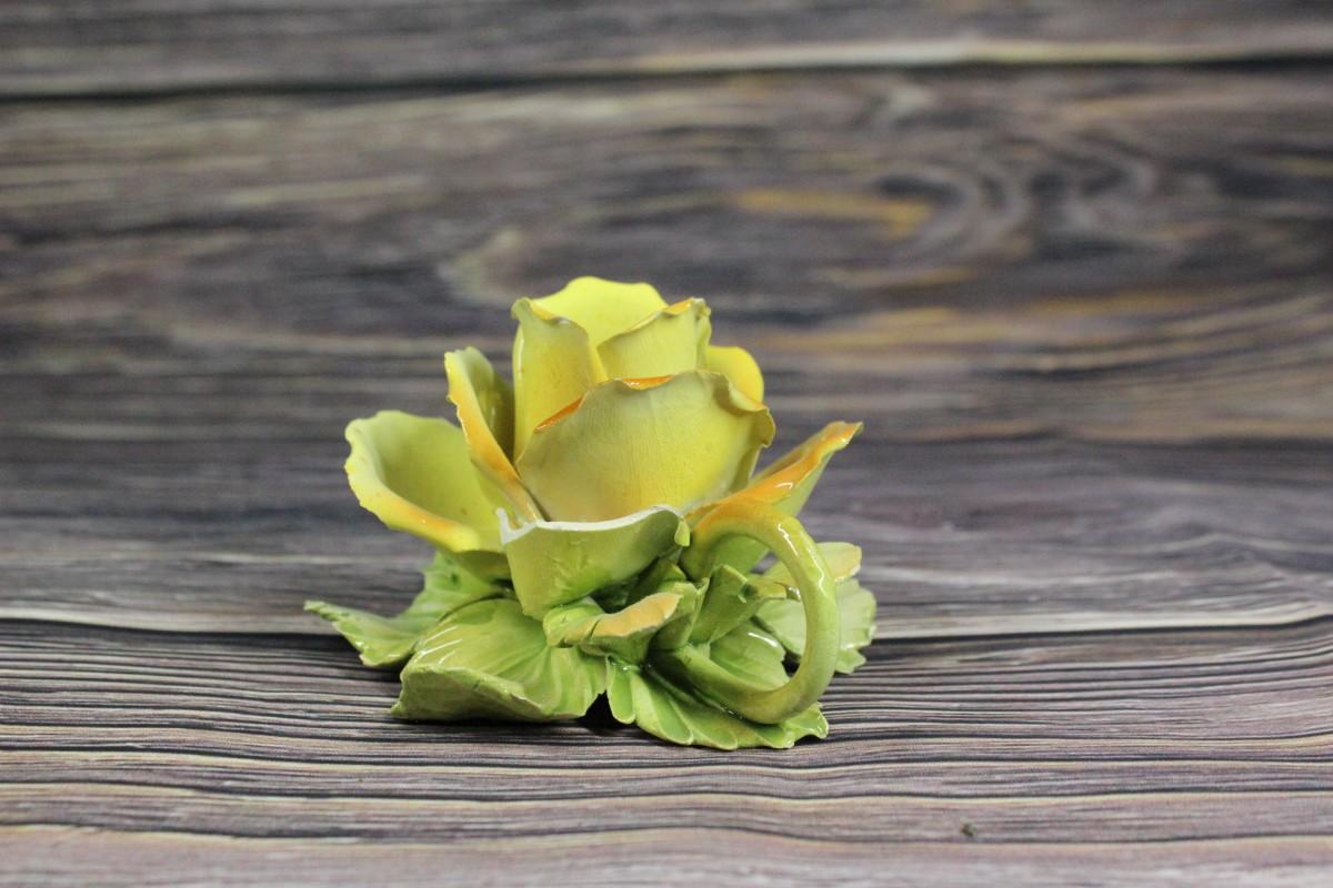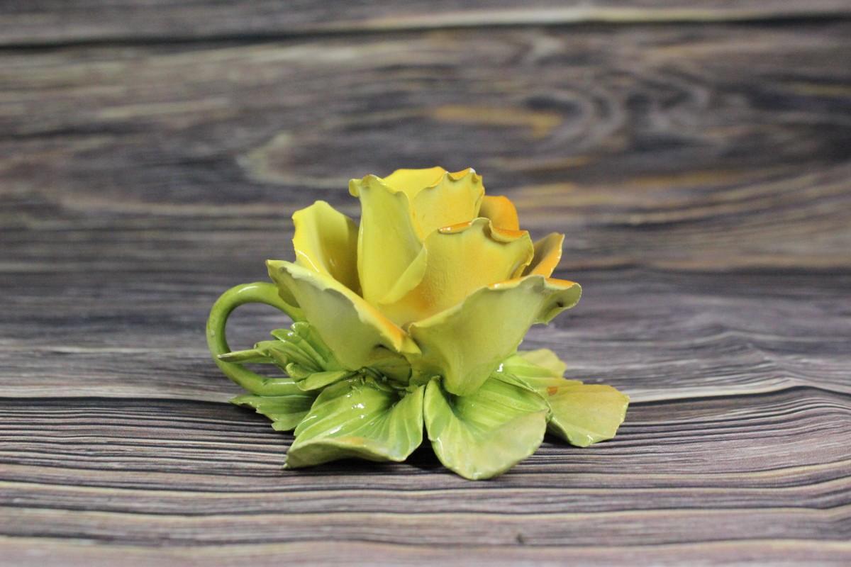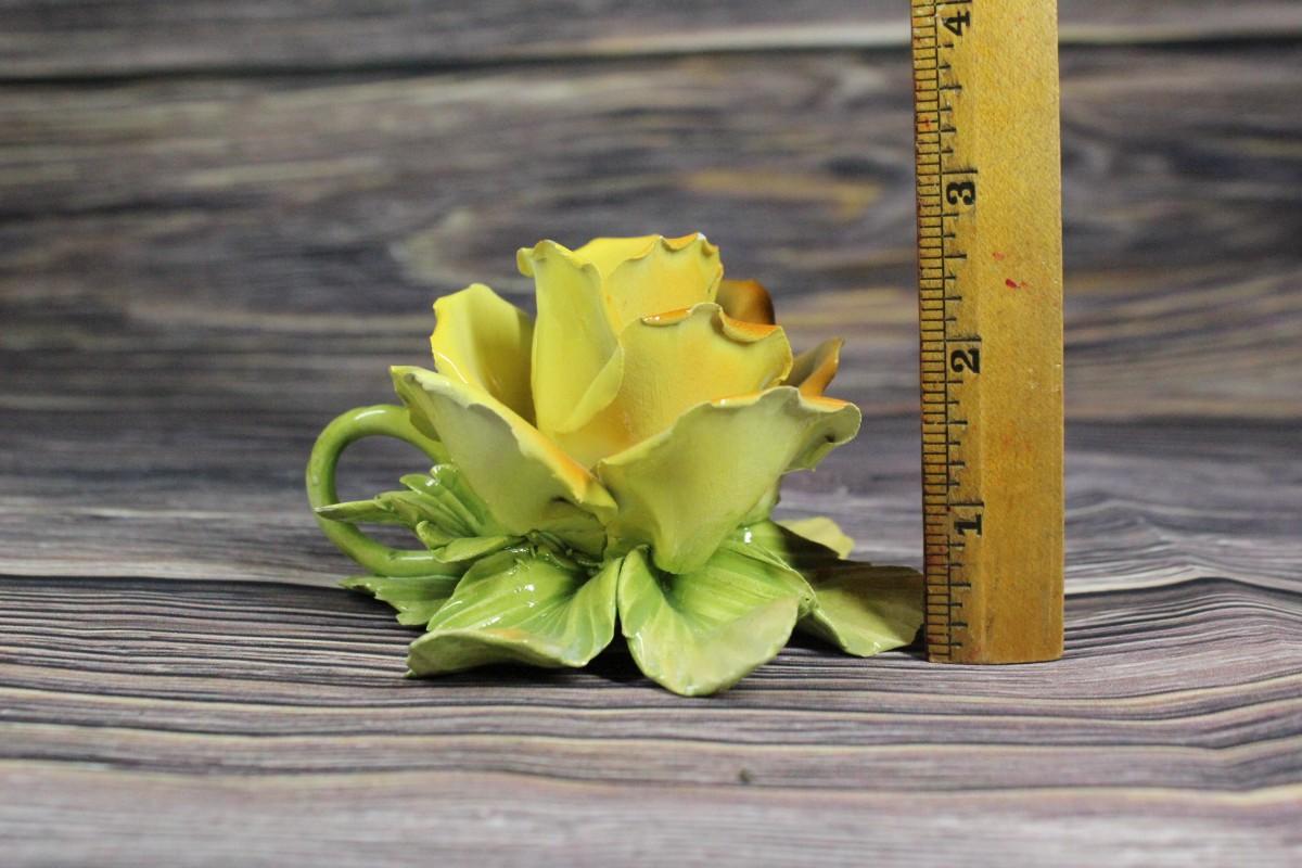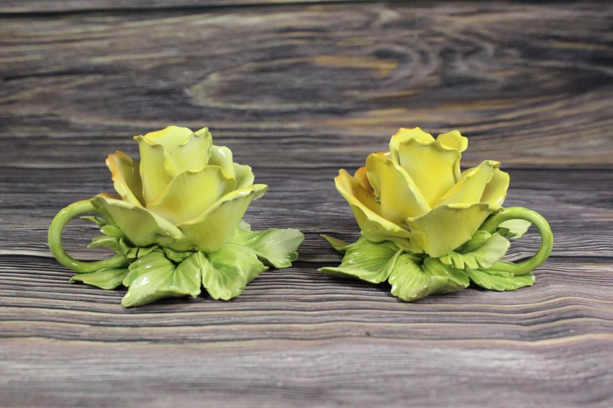Vintage Capodimonte Italy Handmade Ceramic Yellow Rose Candleholders