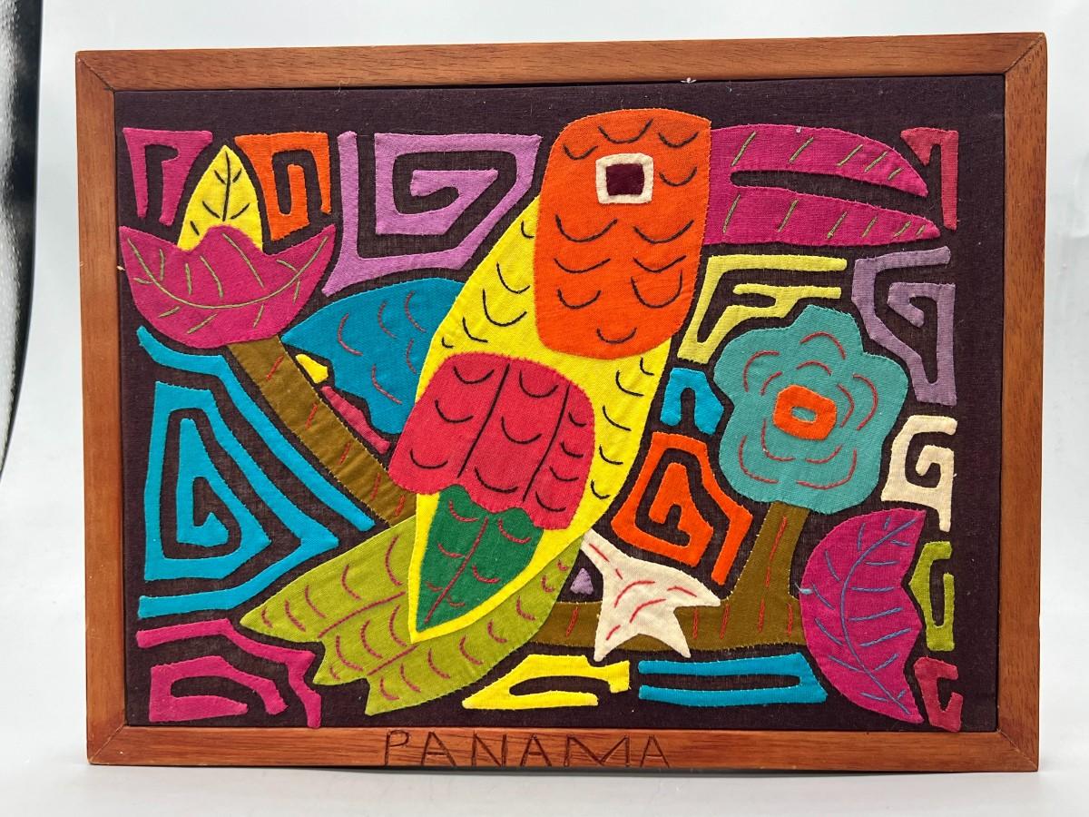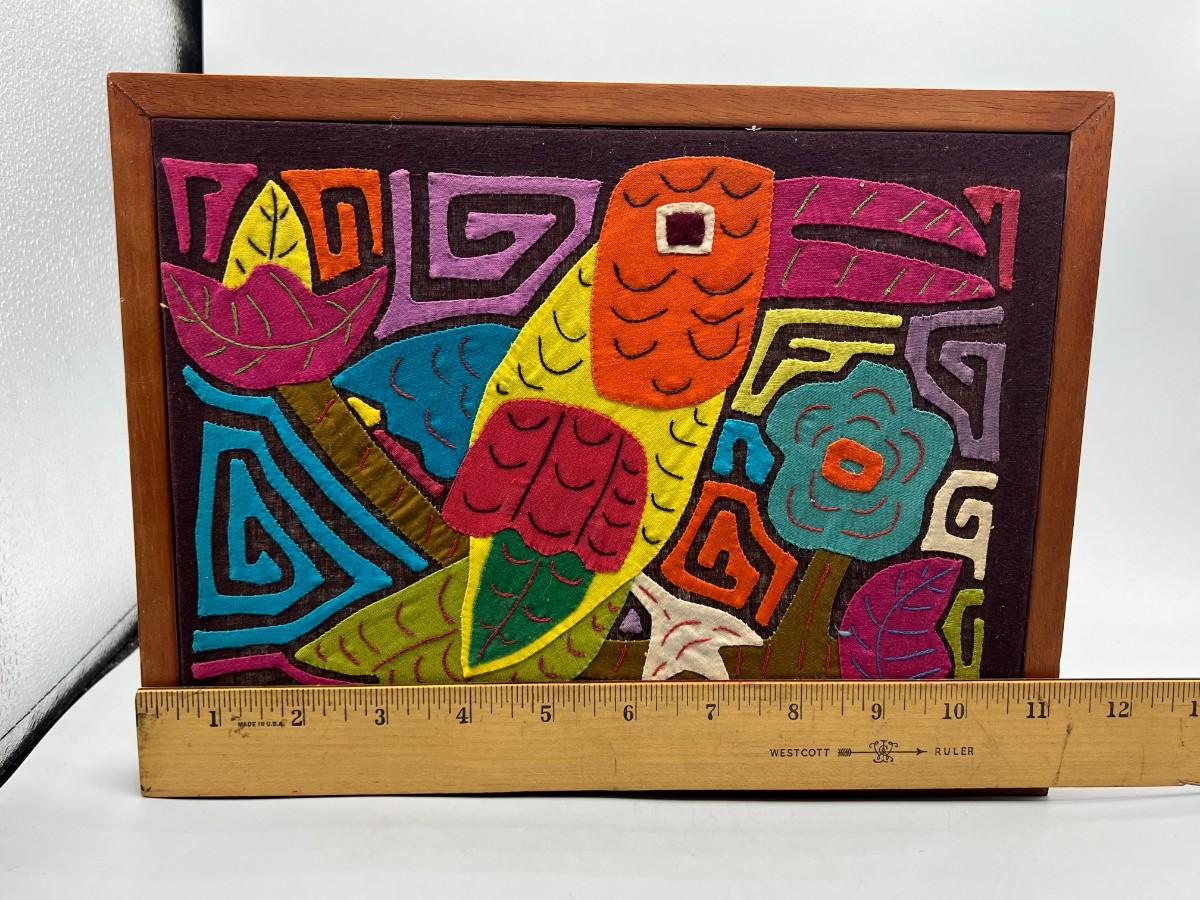 Vintage Handmade Fabric Quilt Material Colorful Tropical Toucan Stretched Canvas Art