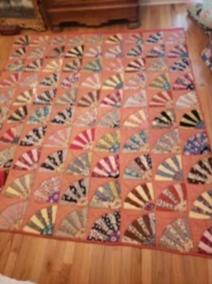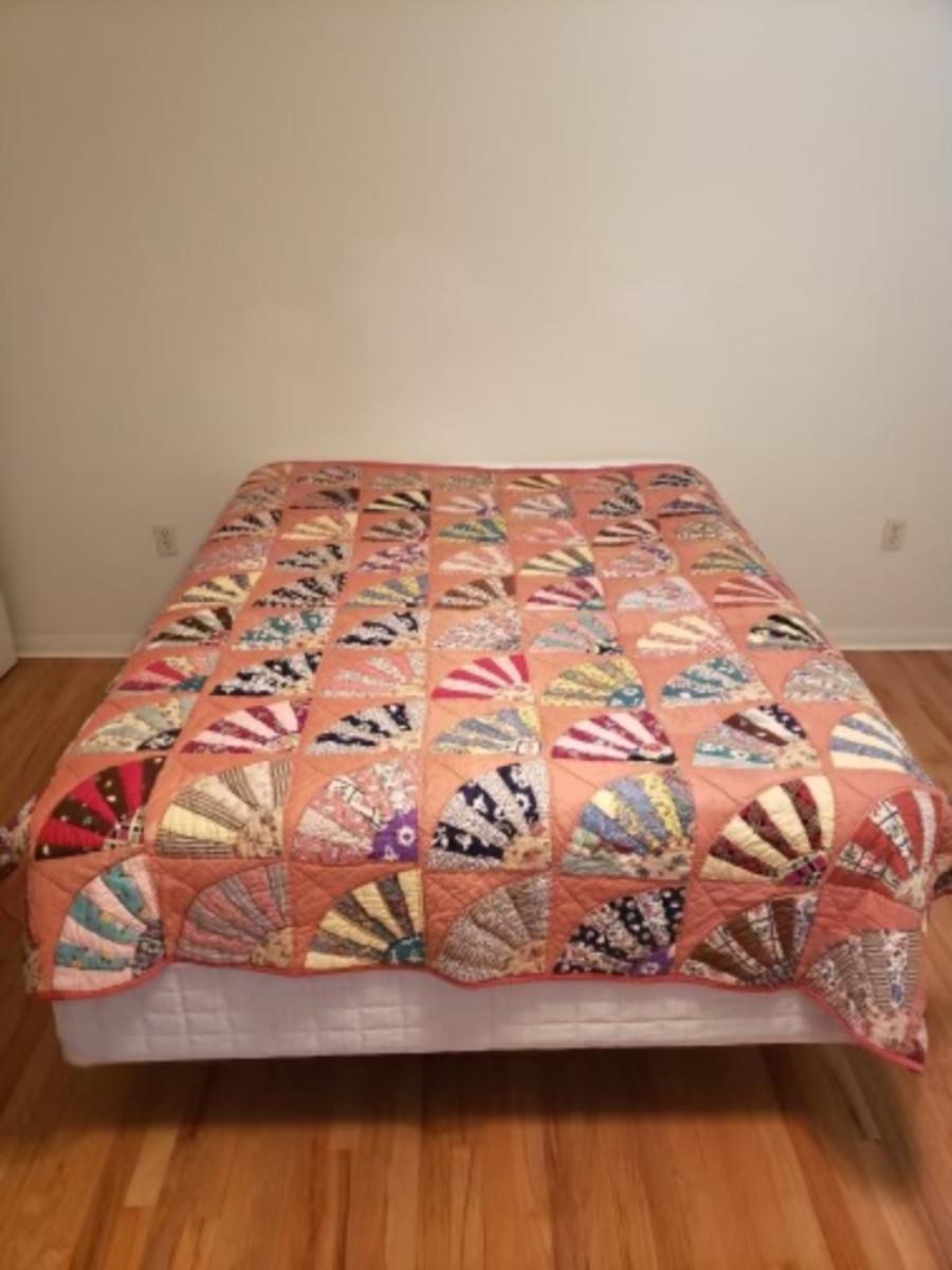 Vintage handmade grandmother's fan quilt