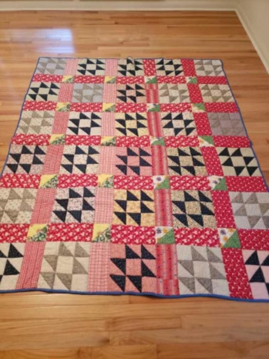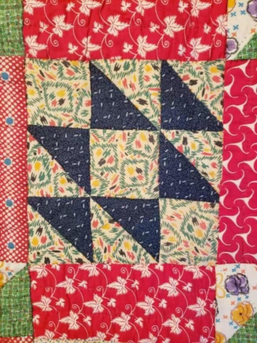 Vintage handmade hand quilted old maid's puzzle quilt.