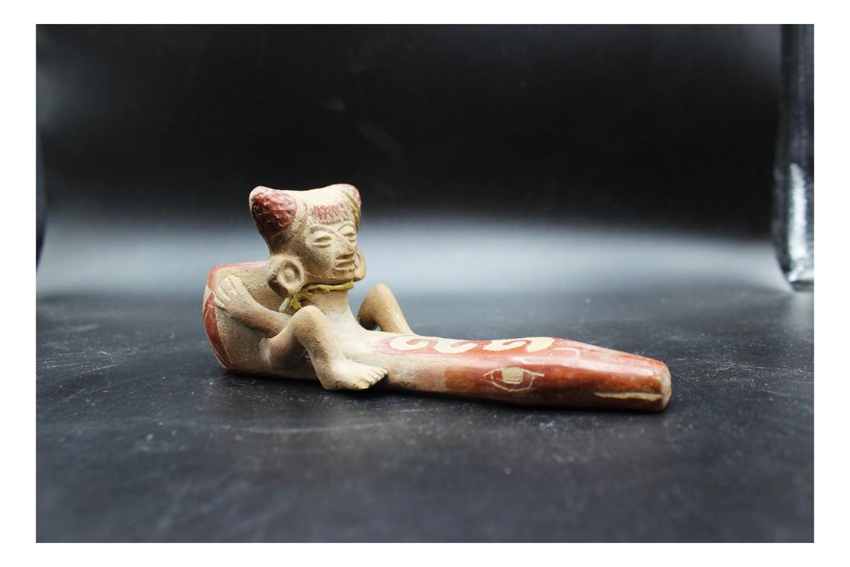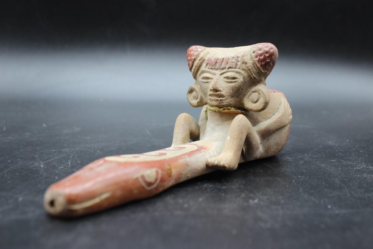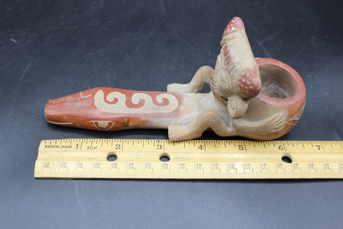 Vintage Handmade Mayan Mesoamerican Effigy Clay Souvenir Pipe