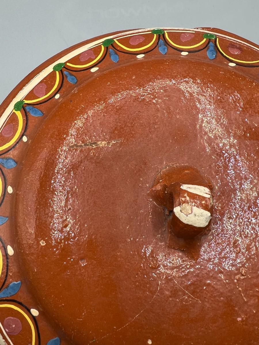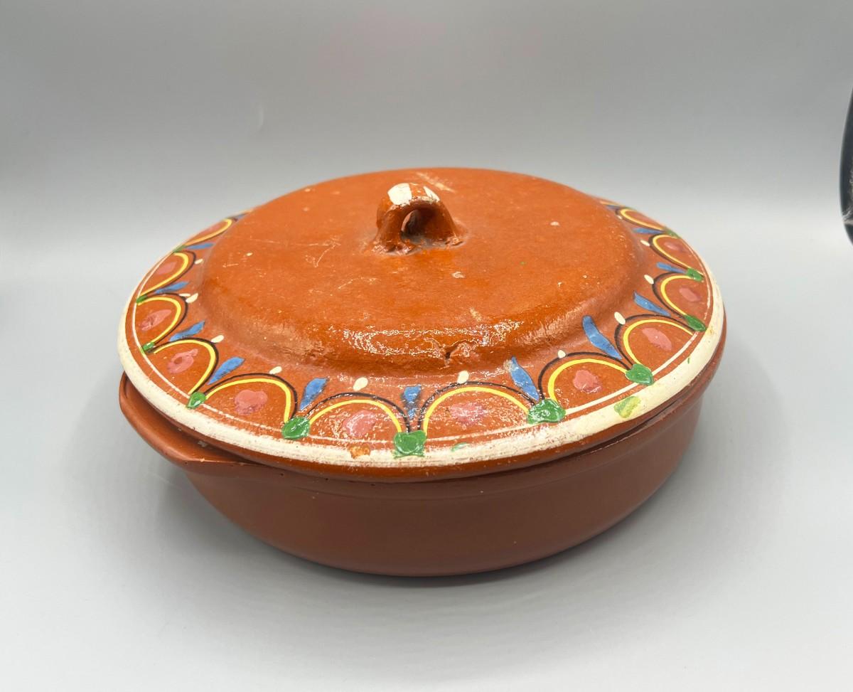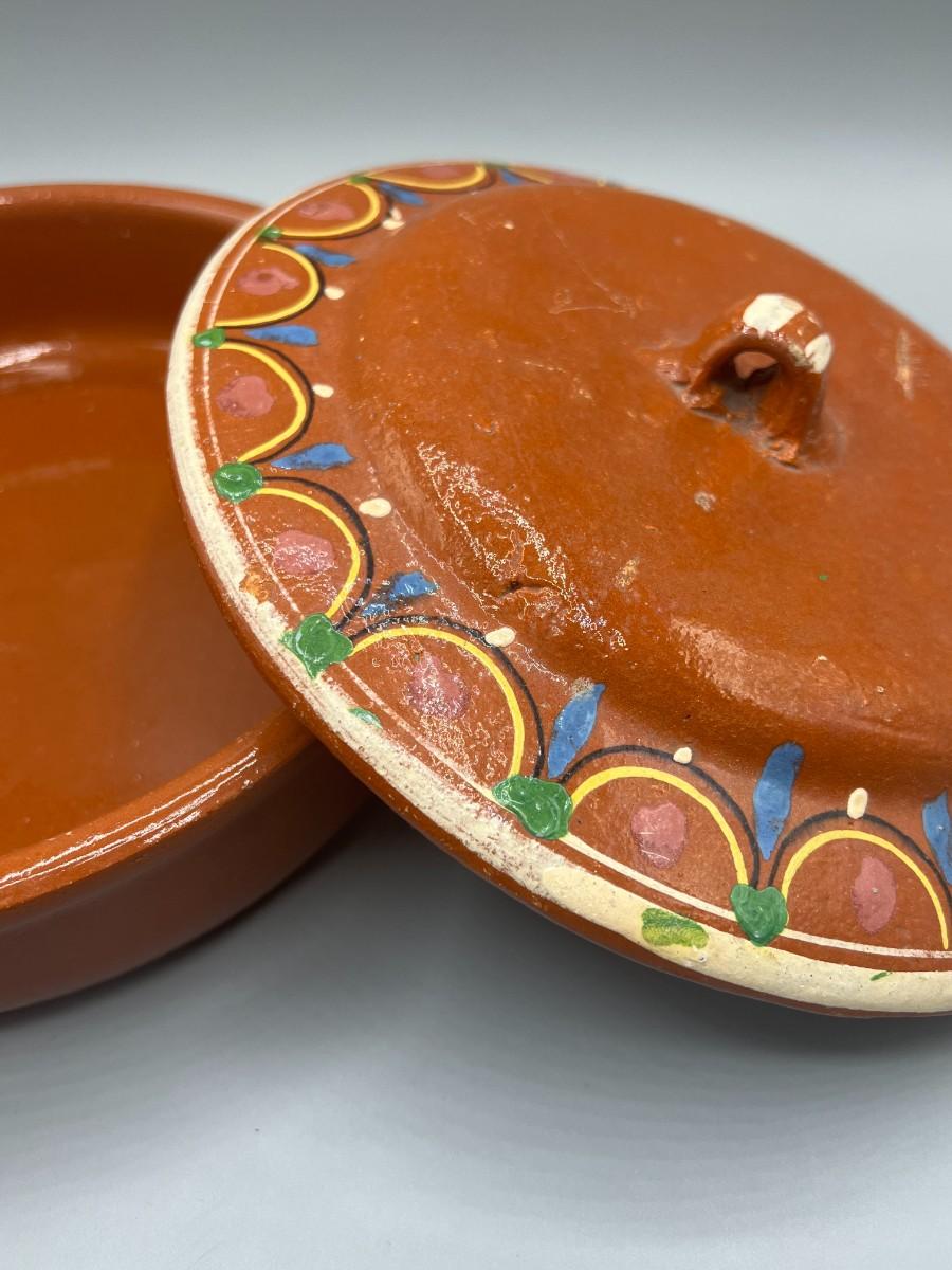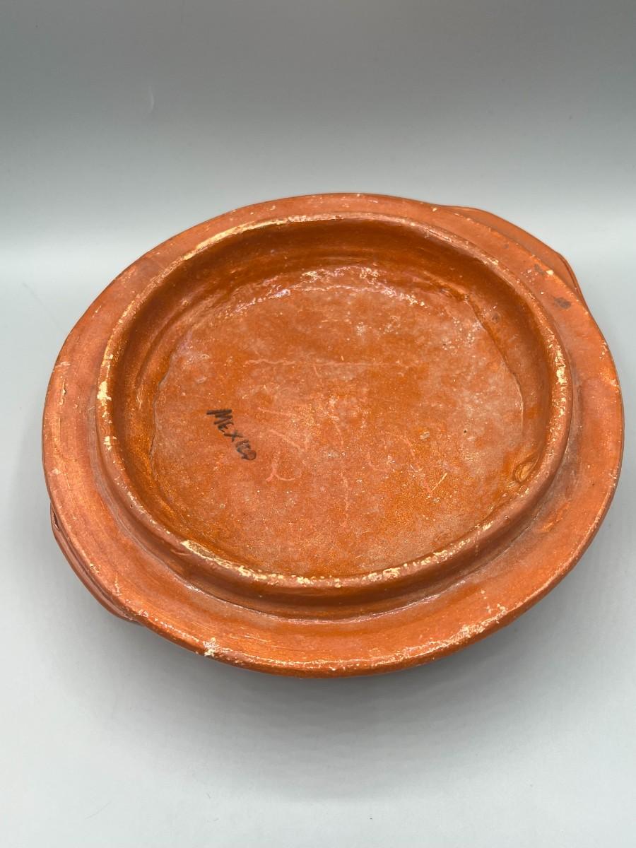 Vintage Handmade Mexican Clay Arepa Tortilla Warmer, there is some light wear, but there is no significant damage and is in good vintage condition. Check pictures for more details and for sizing.
