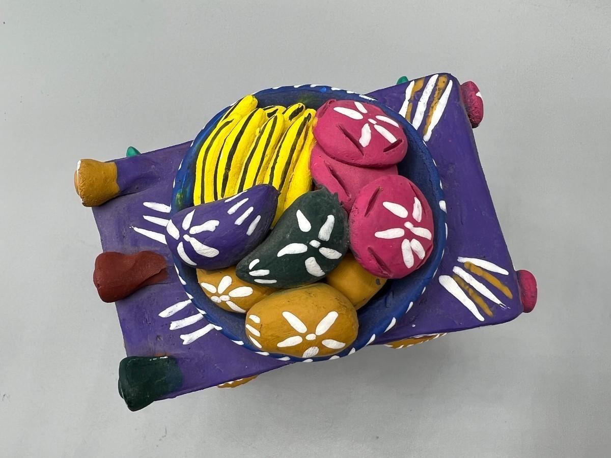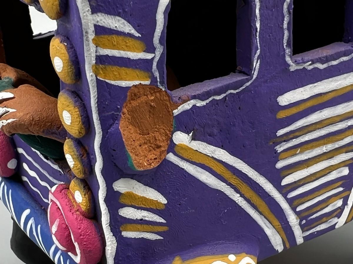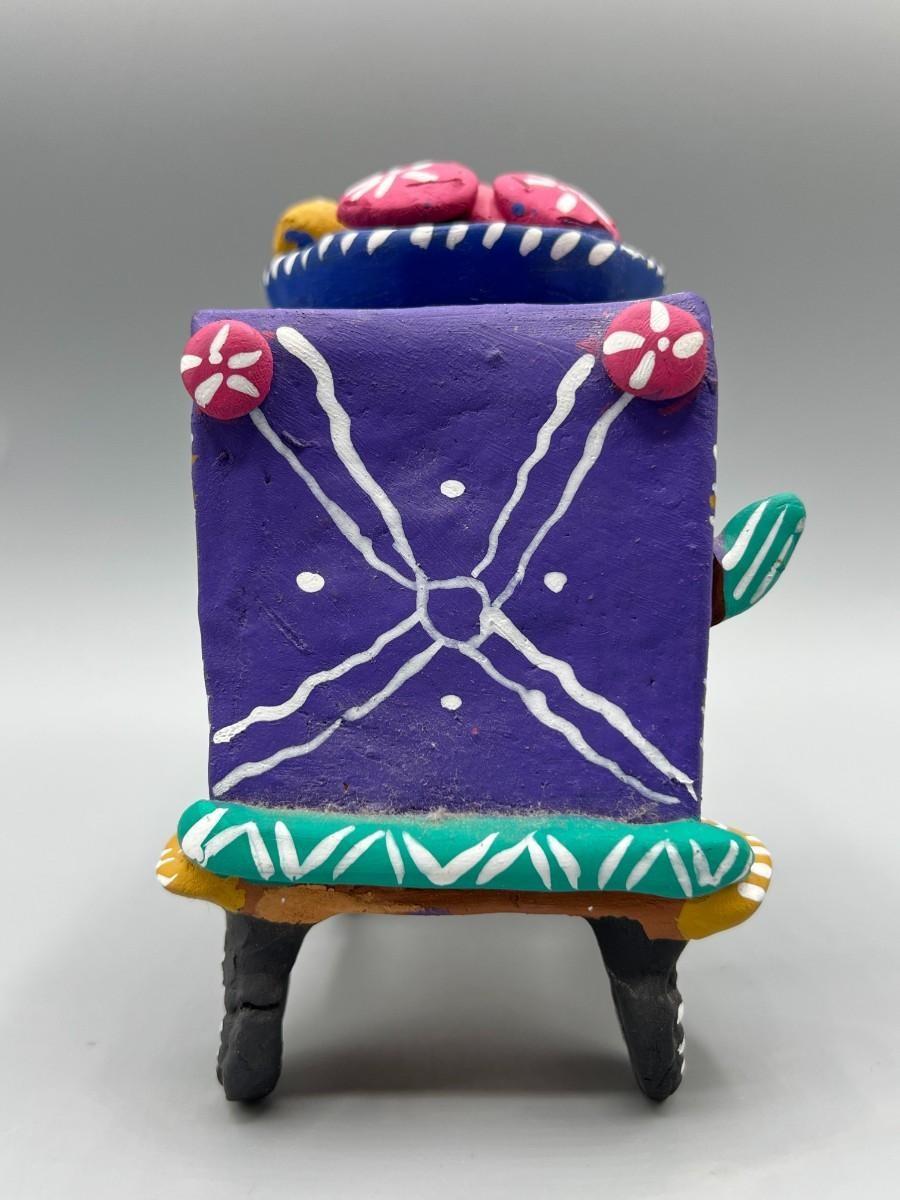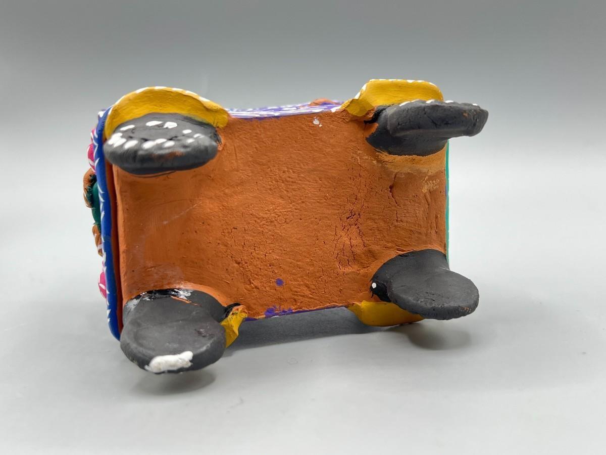 Vintage Handmade Mexican Michoacán Ocumicho Colorful Ceramic Pottery Traveling Camion Bus with Passengers Folk Art