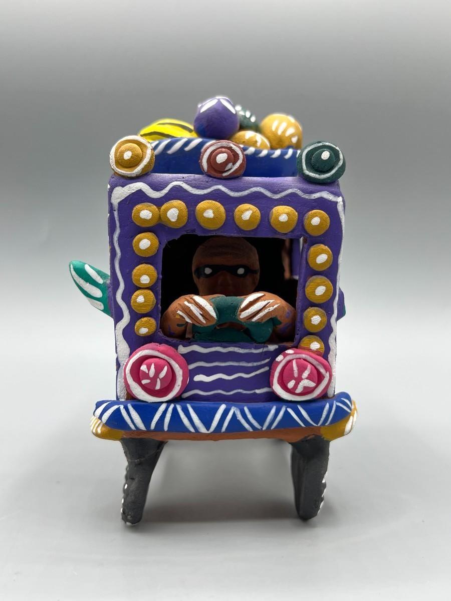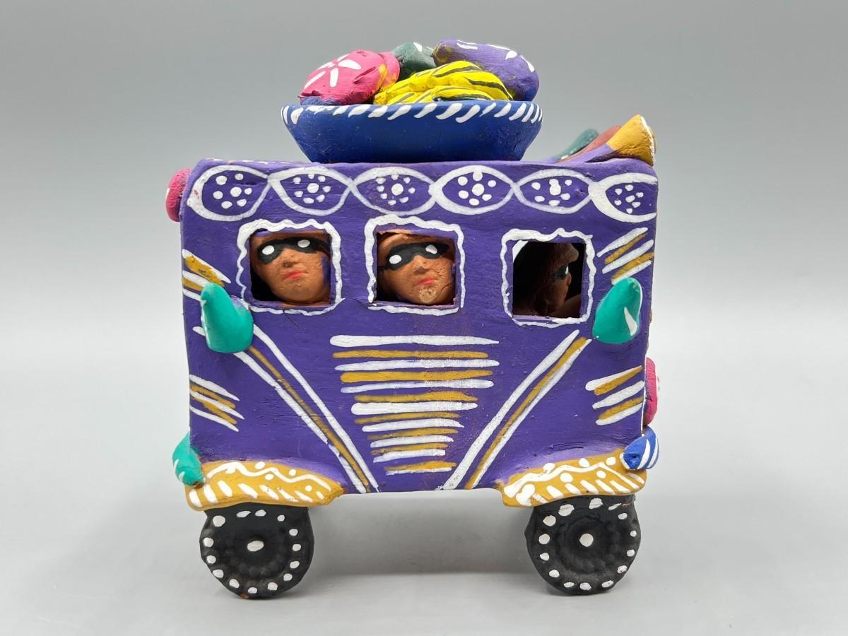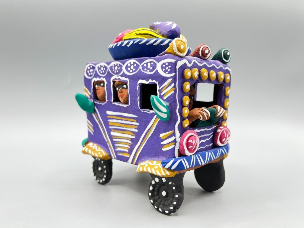 Vintage Handmade Mexican Michoacán Colorful Ceramic Traveling Camion Bus with Passengers Folk Art, one of the mirrors has been broken off, there is no other significant damage to the piece and is in good vintage and displayable condition. Check pictures for more details and for sizing.