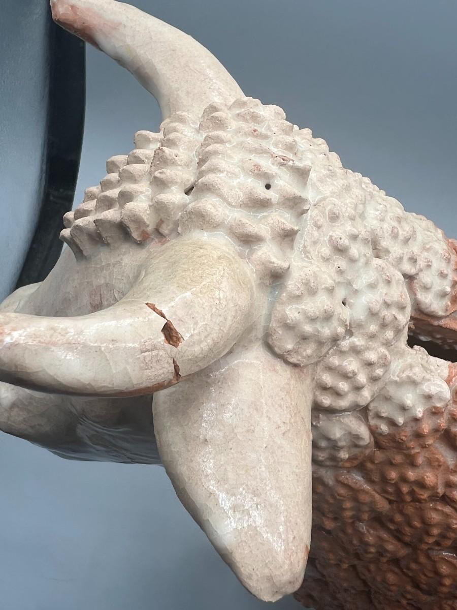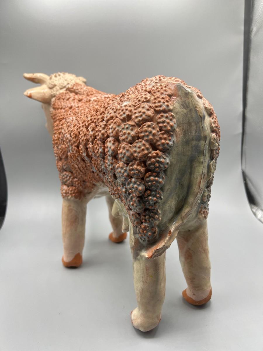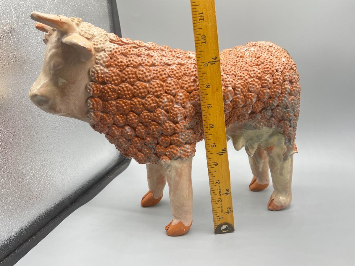 Vintage Handmade Ornate Ceramic Pottery Bull Figurine