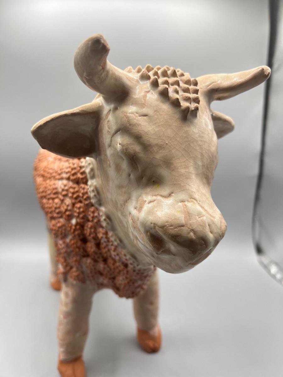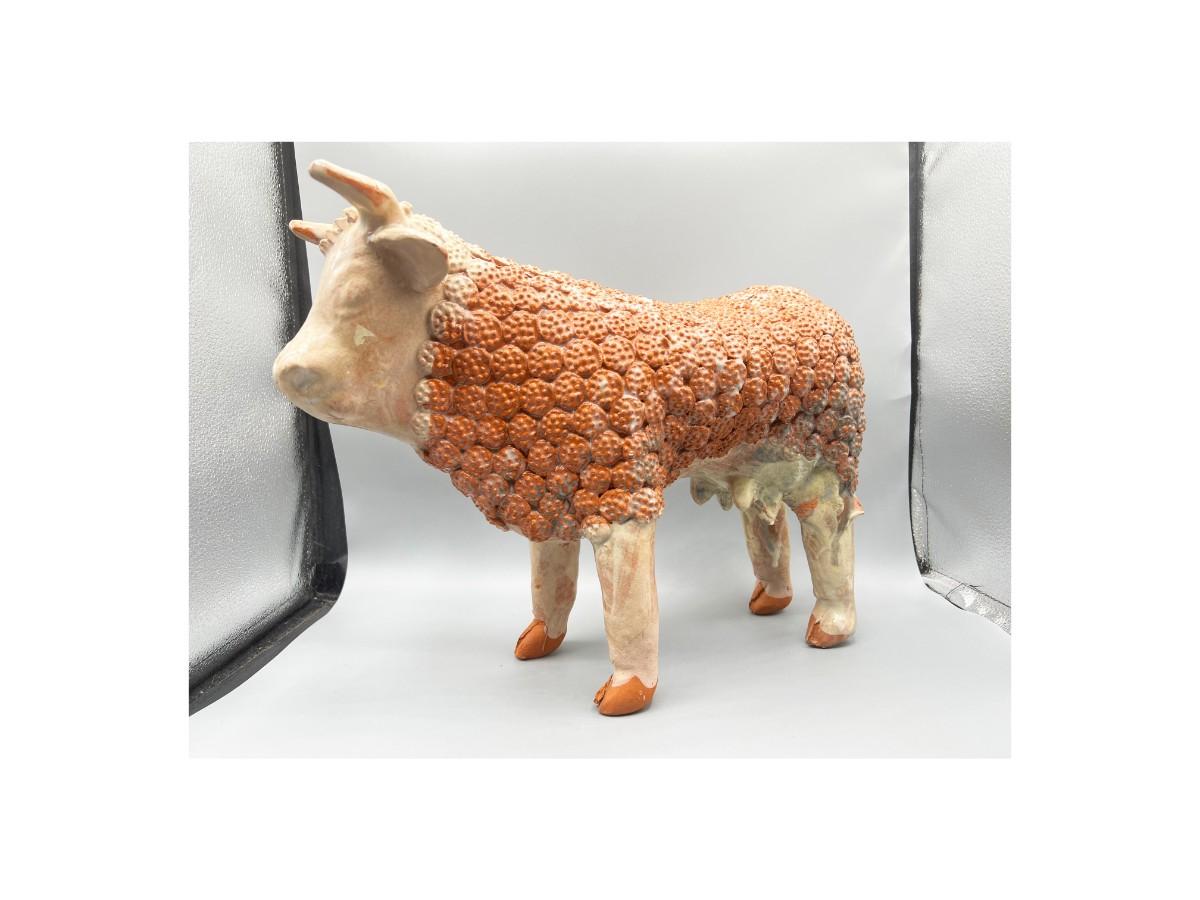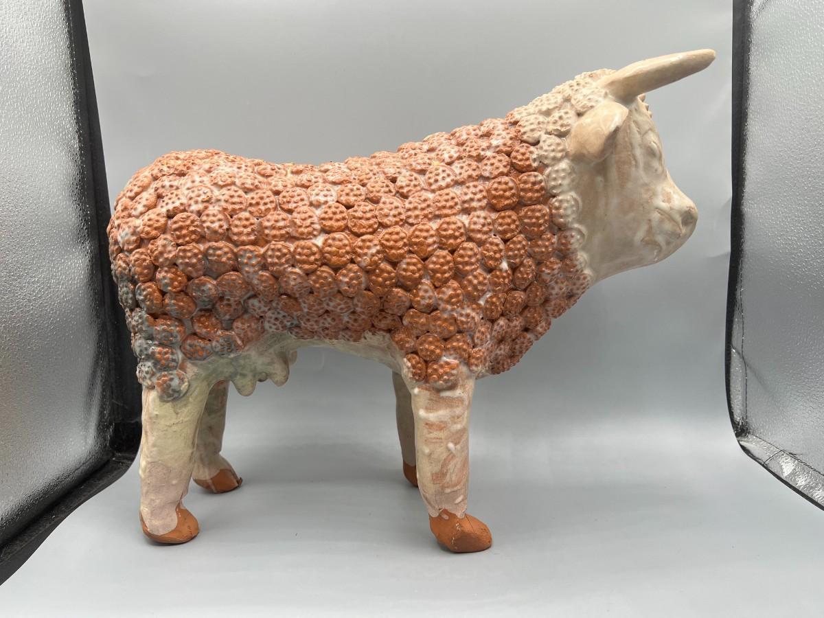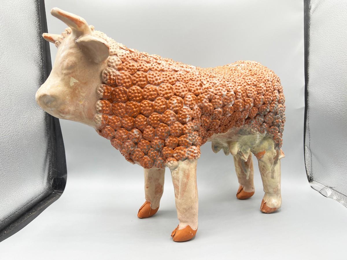 Vintage Handmade Ornate Ceramic Pottery Bull Figurine