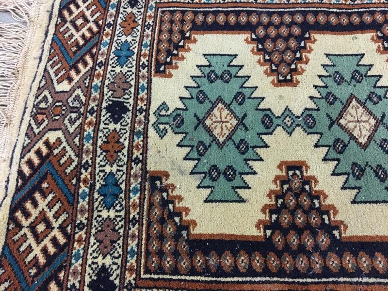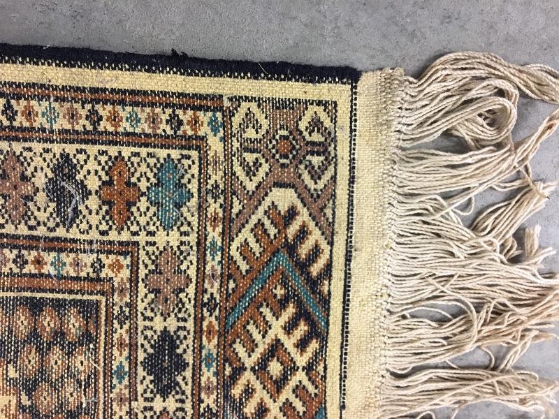 Good condition for the age. Geometric design. We did not try to clean it. Will need cleaning for the dust and odor. Delivery and shipping services available. Please contact us to request a quote.