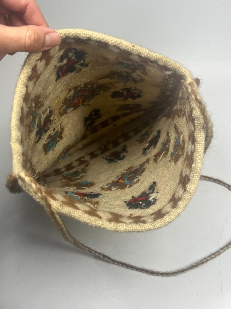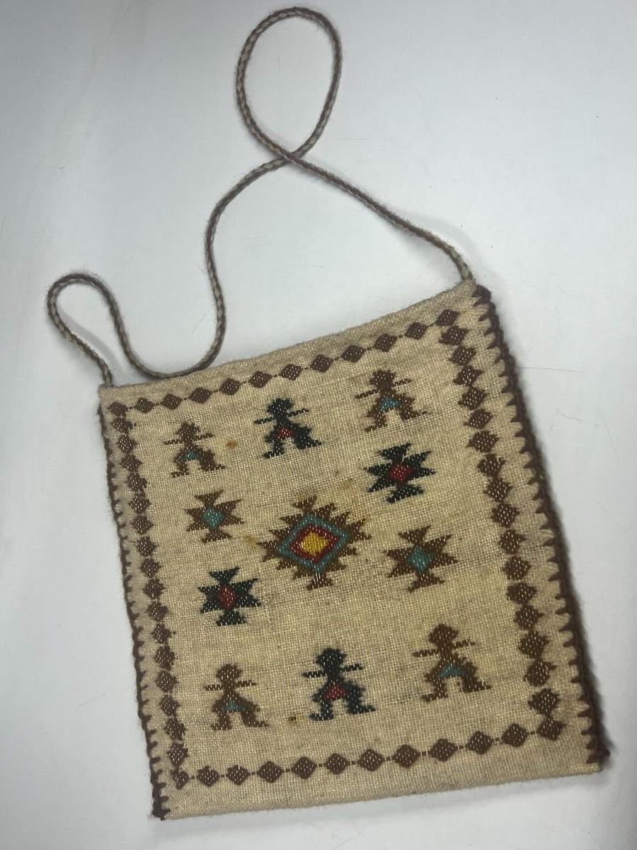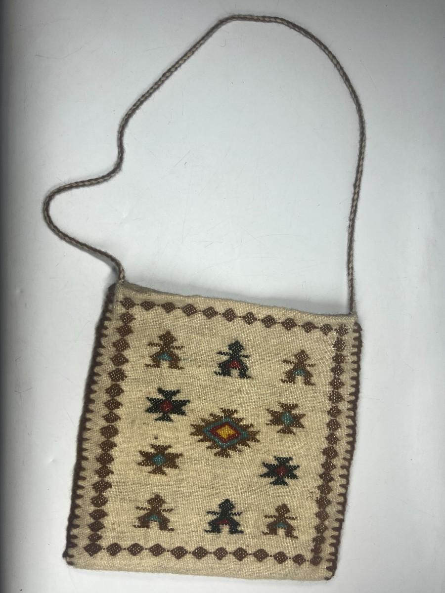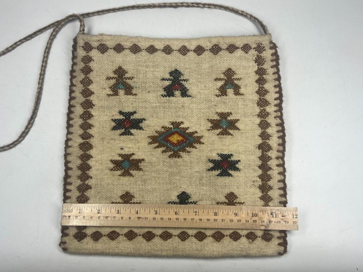Vintage Handmade Southwestern Geometric Peruvian Woven Wool Fabric Travel Satchel Purse Bag