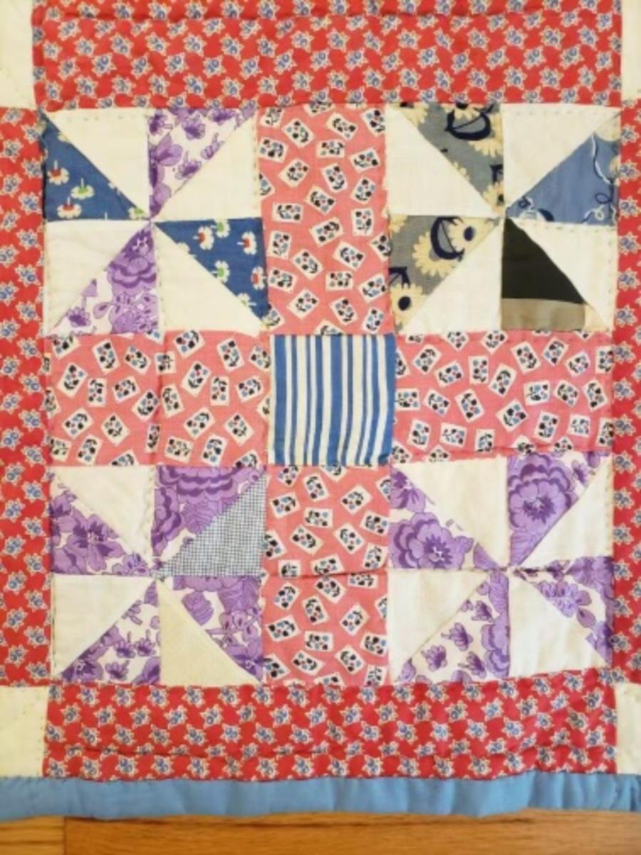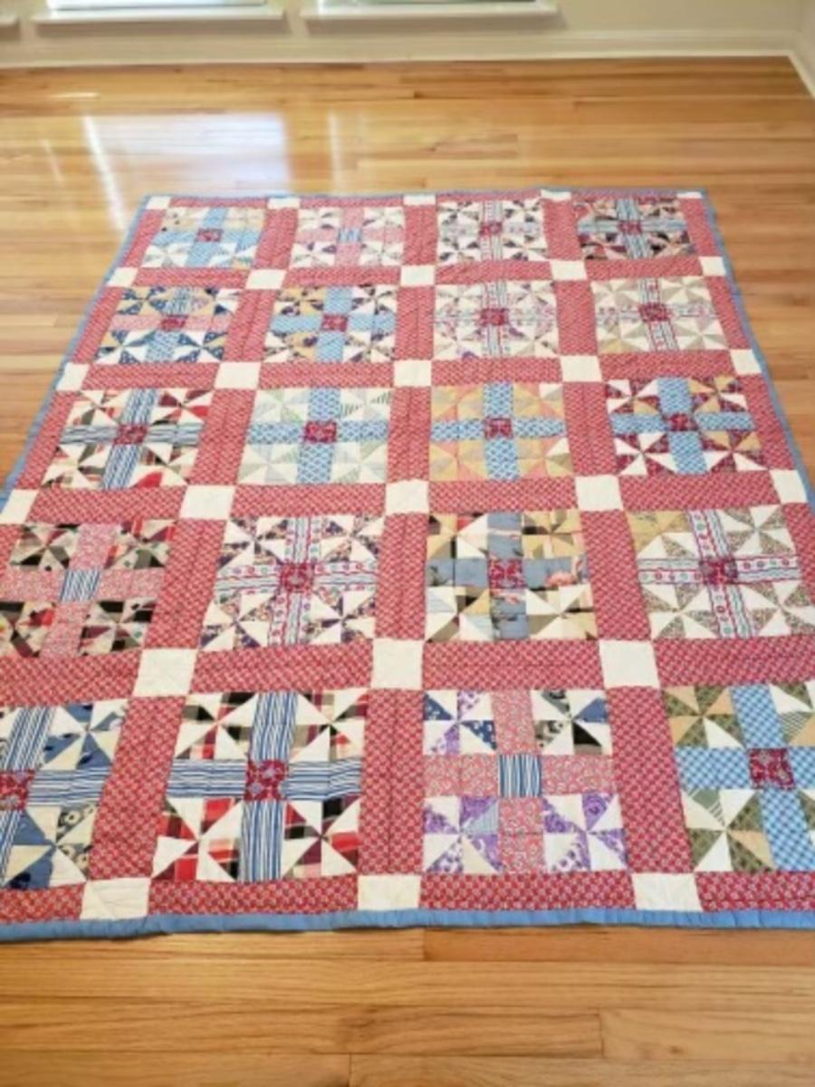 Vintage handmade quilt. 12" Block pinwheel block pattern