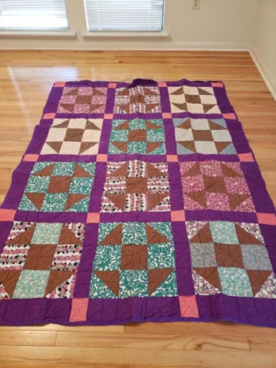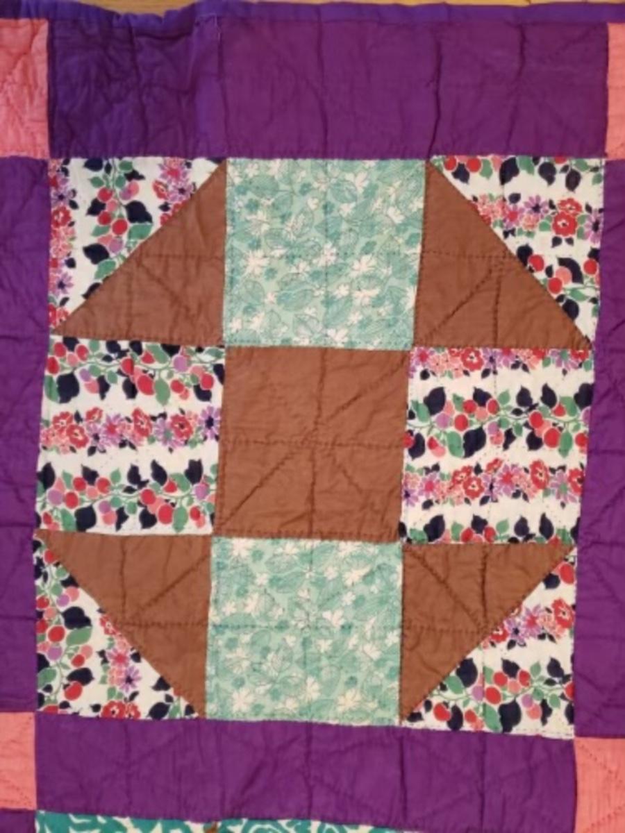 Vintage handmade quilt. Shoo Fly Pattern. 62 x82 good condition