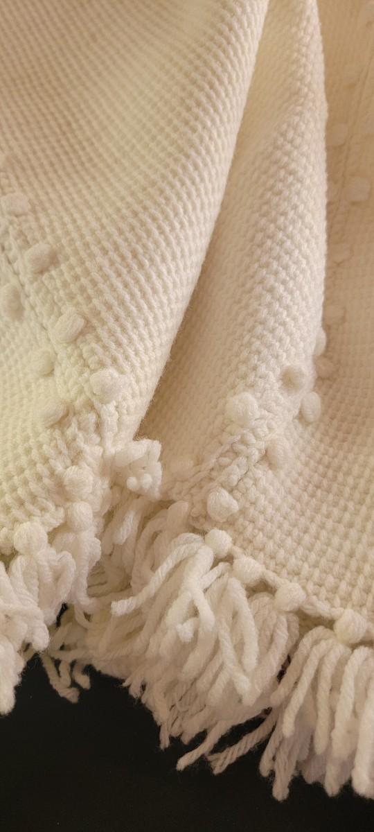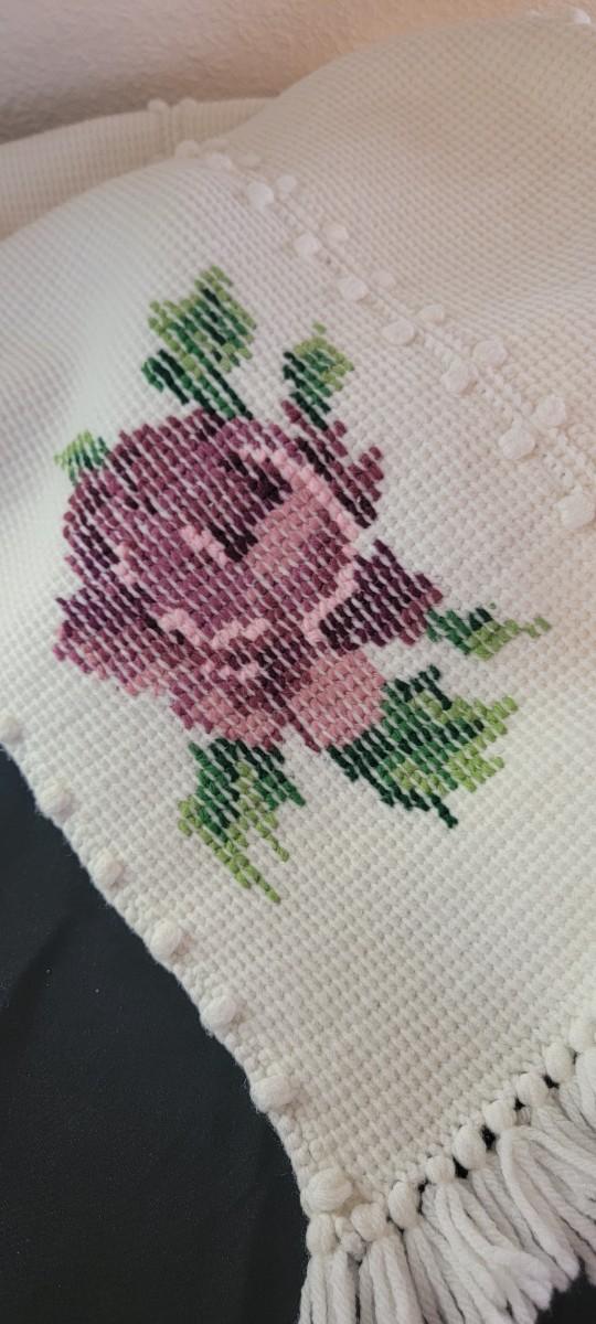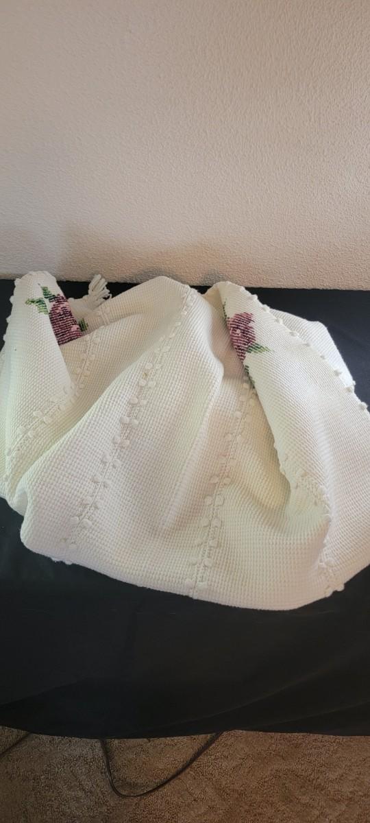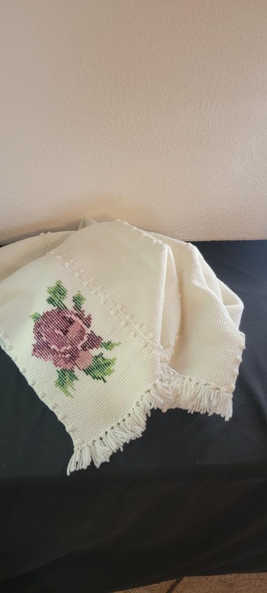 42" Wx 68" L beautiful throw, fringed, detailed with floral design in four corners