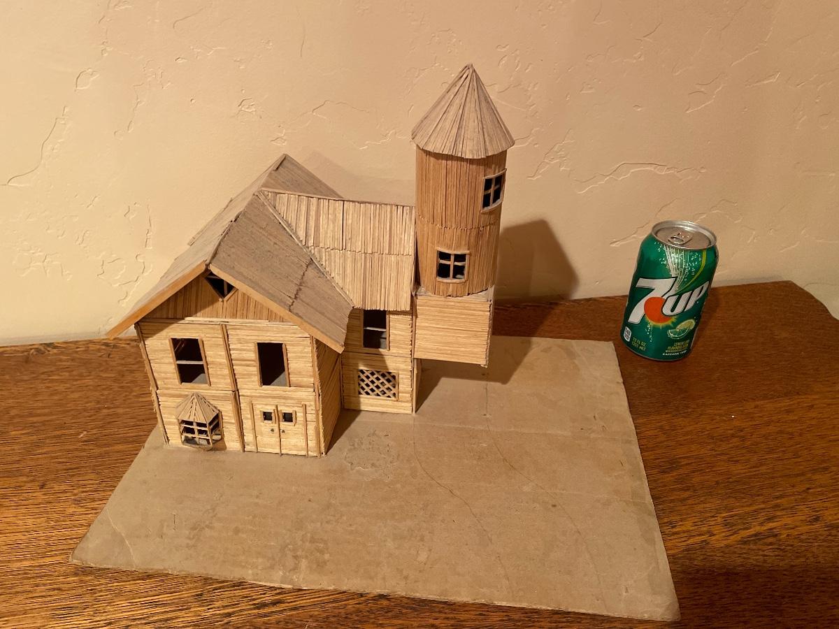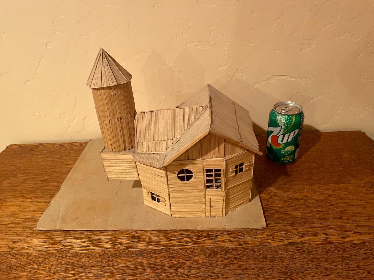 #293 Vintage Handmade TOOTHPICK Miniature House w/Silo