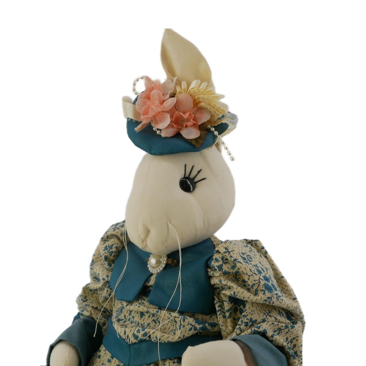 Vintage handmade Victorian dressed bunny rabbit plush. She is so sweet! Comes with her umbrella and she stands about 16" tall. No marks or signatures.