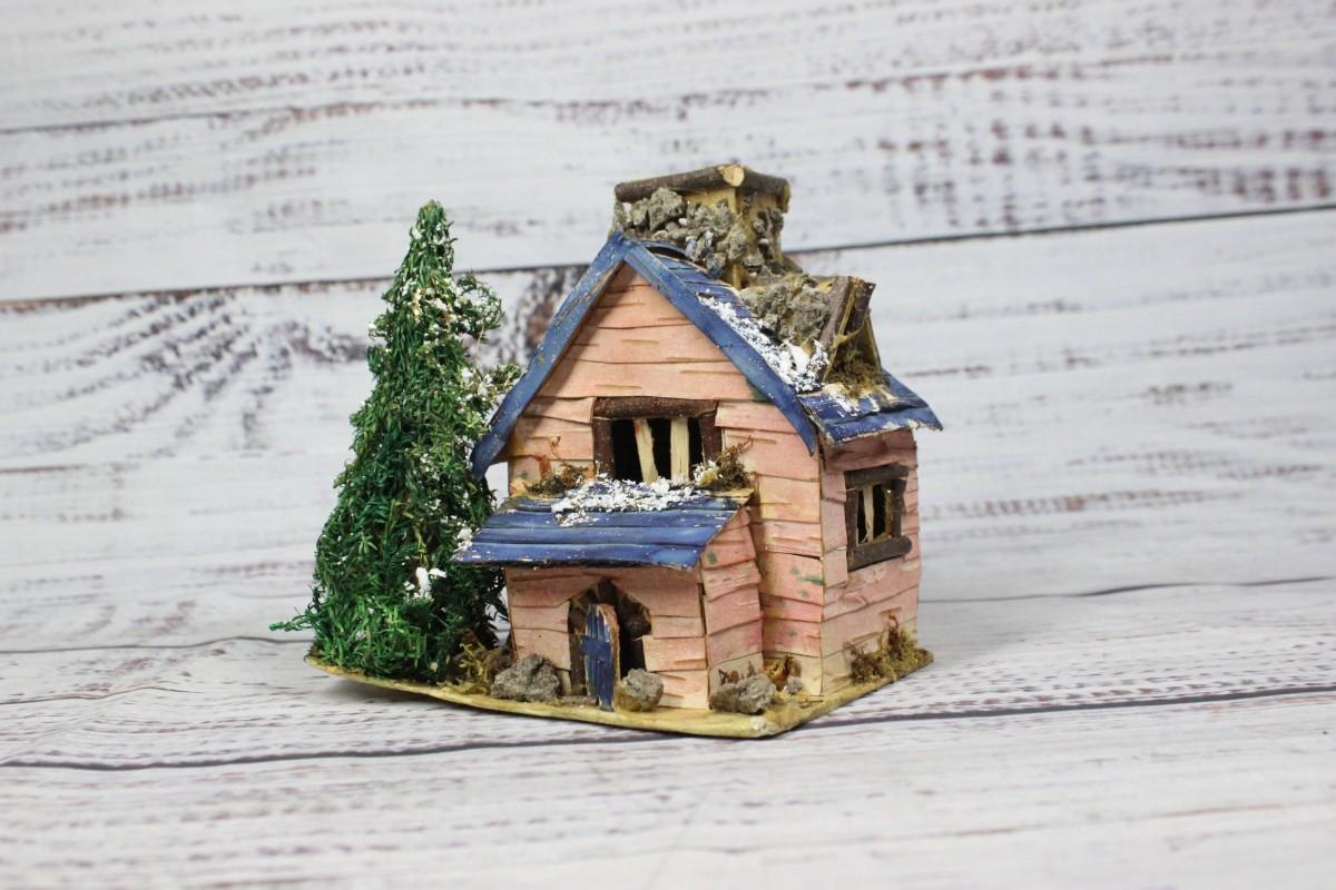 Vintage Handmade Winter Model Cabin Home, there's no significant damage to the model home. Check photos for more details and for sizing.