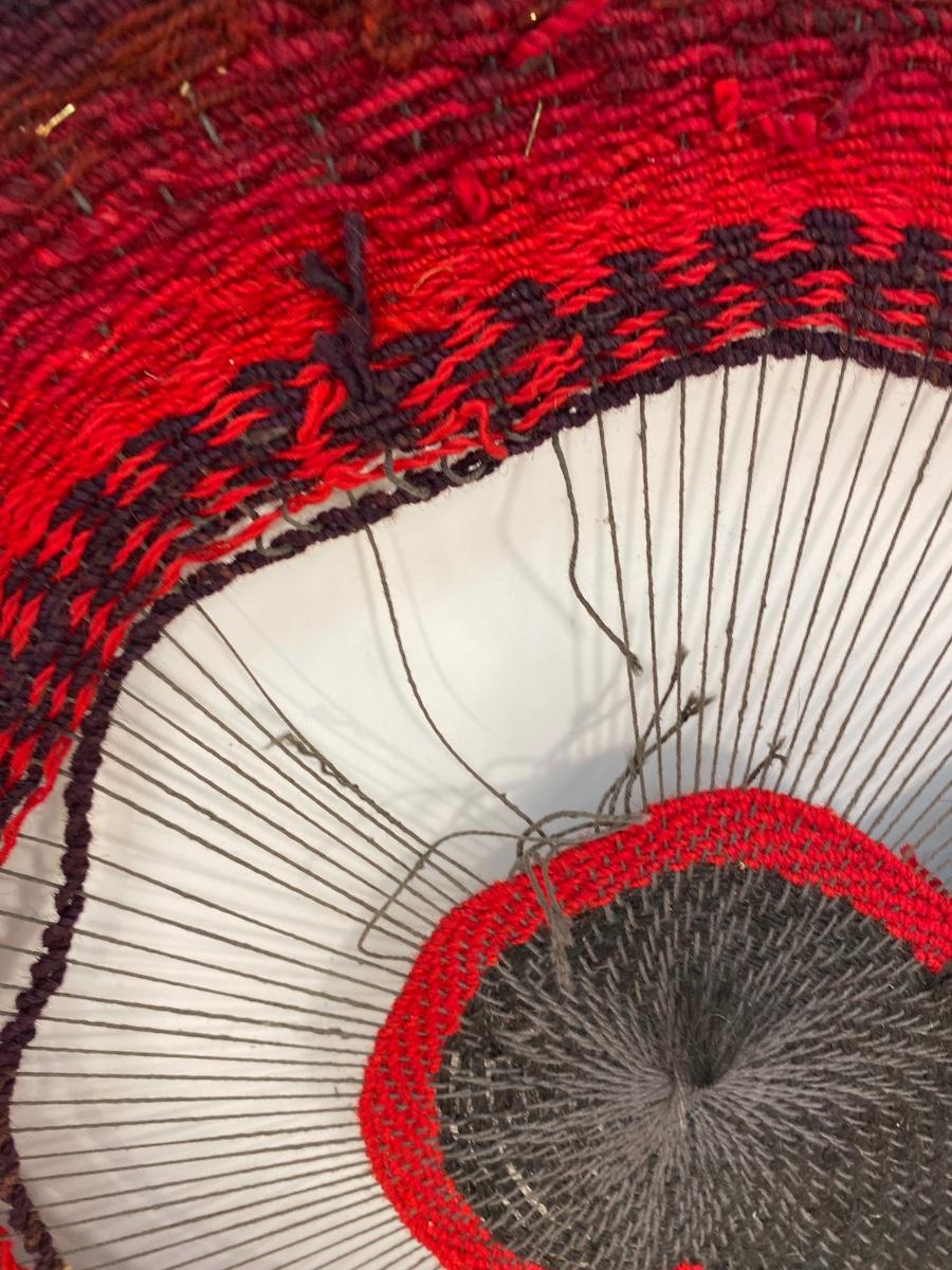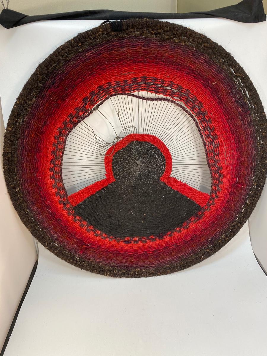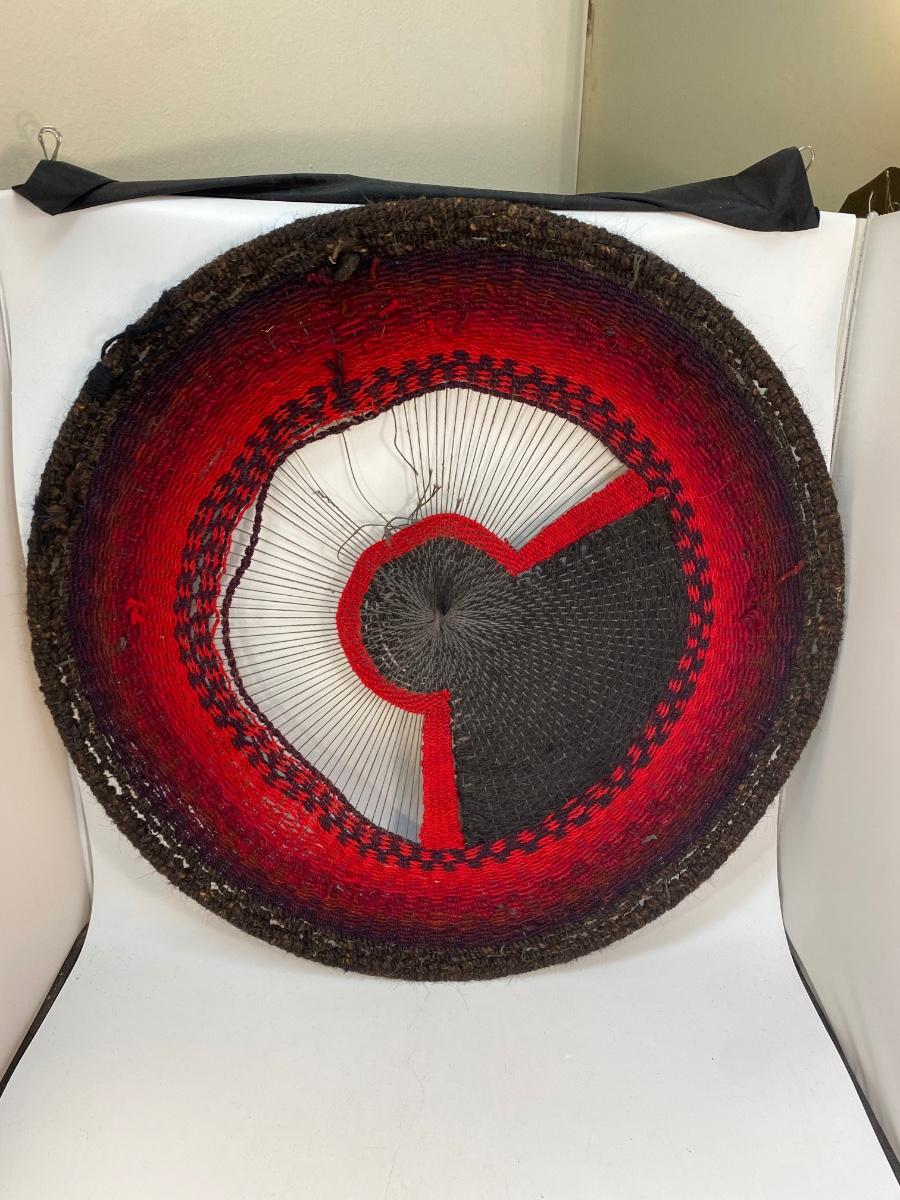 Vintage Handmade Woven Yarn Wall Art Medallion. Needs some repair as it has broken strings. About 24" diameter.