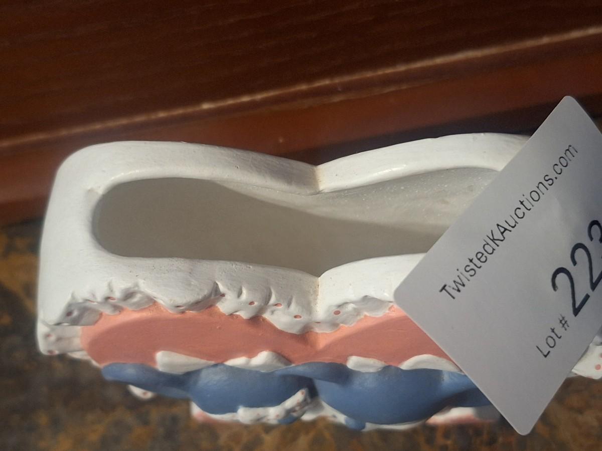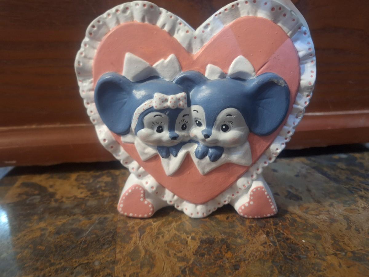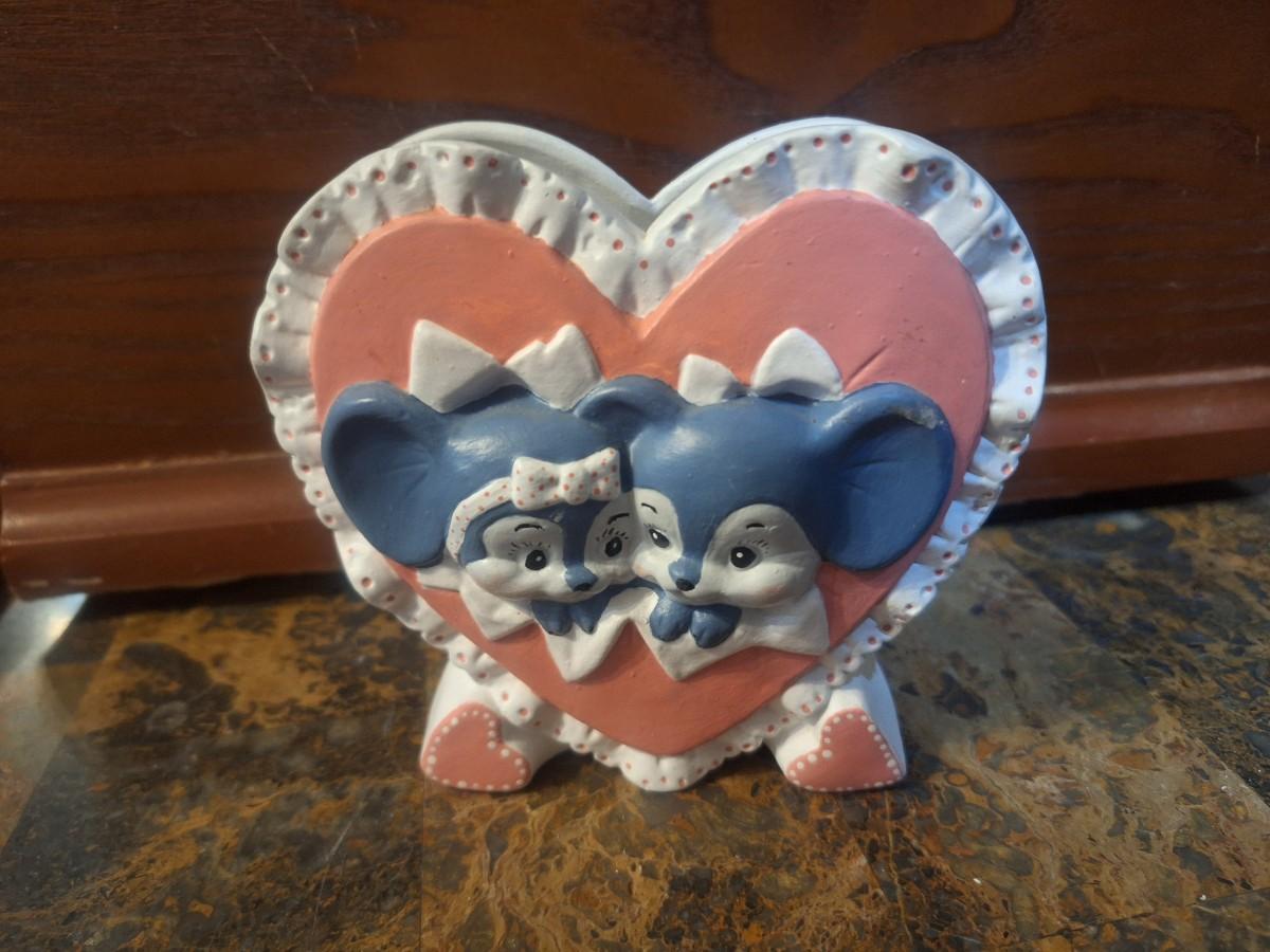 vintage hand-painted ceramic mouse heart-shaped planter or vase.