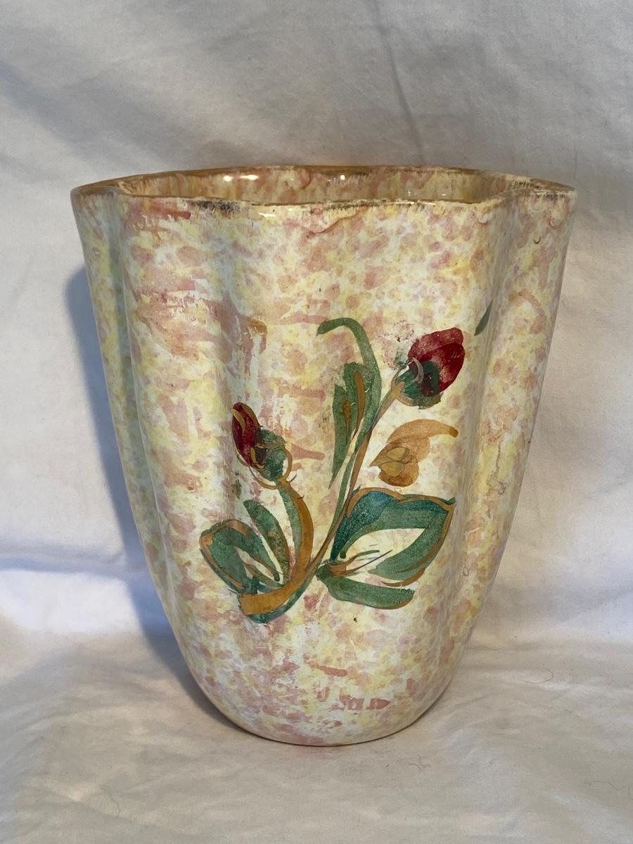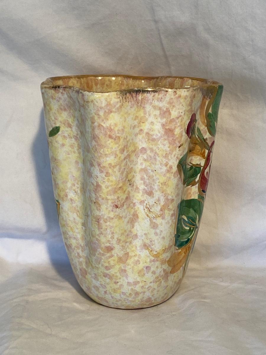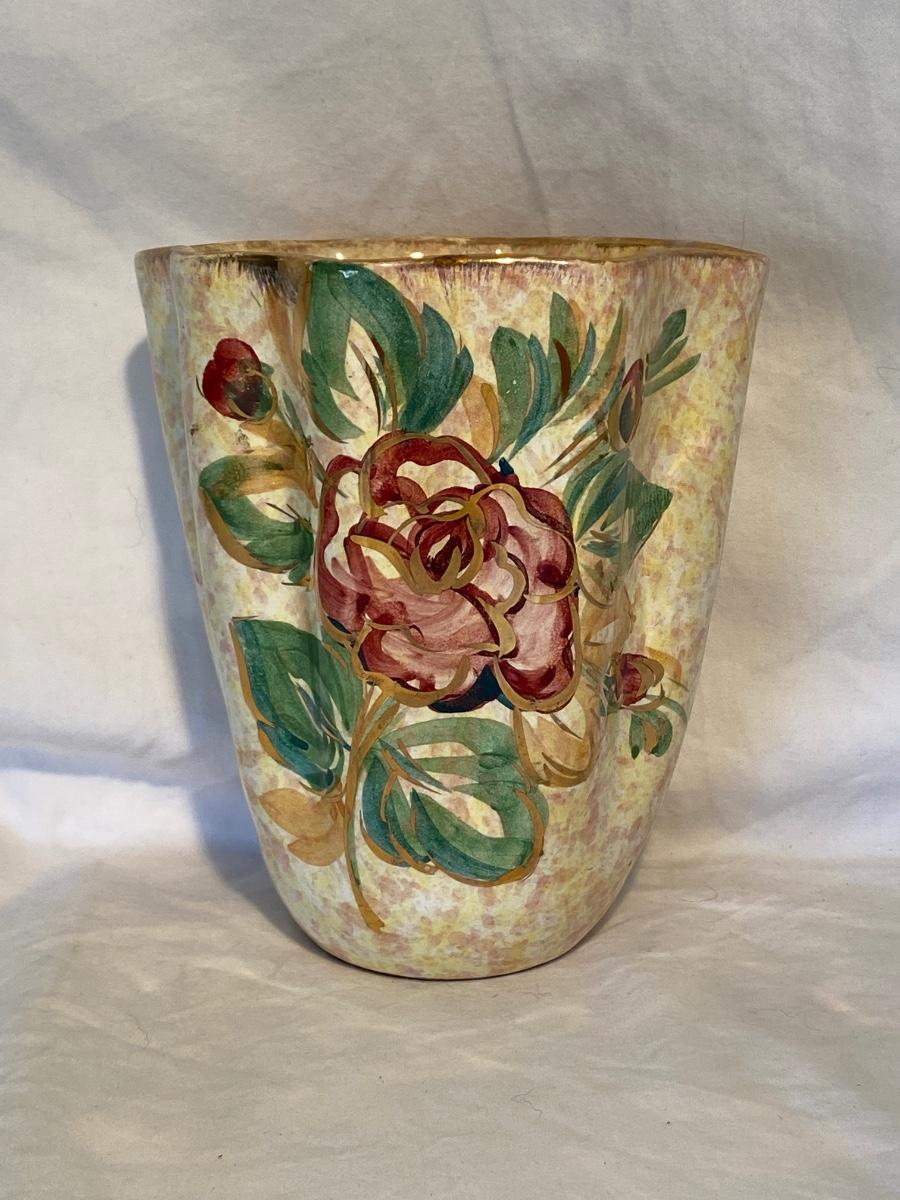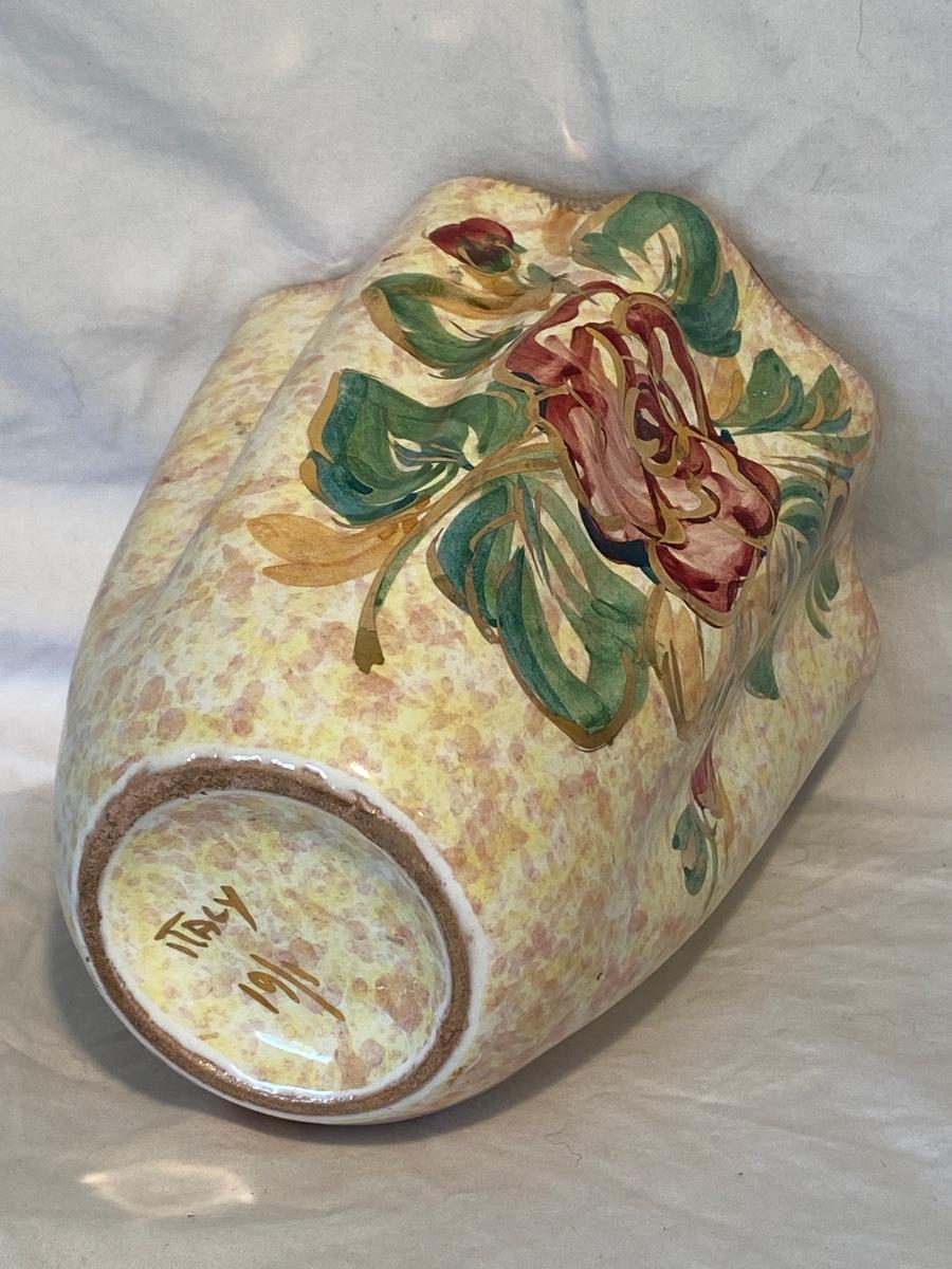Vintage Hand-Painted Floral Italian Vase
