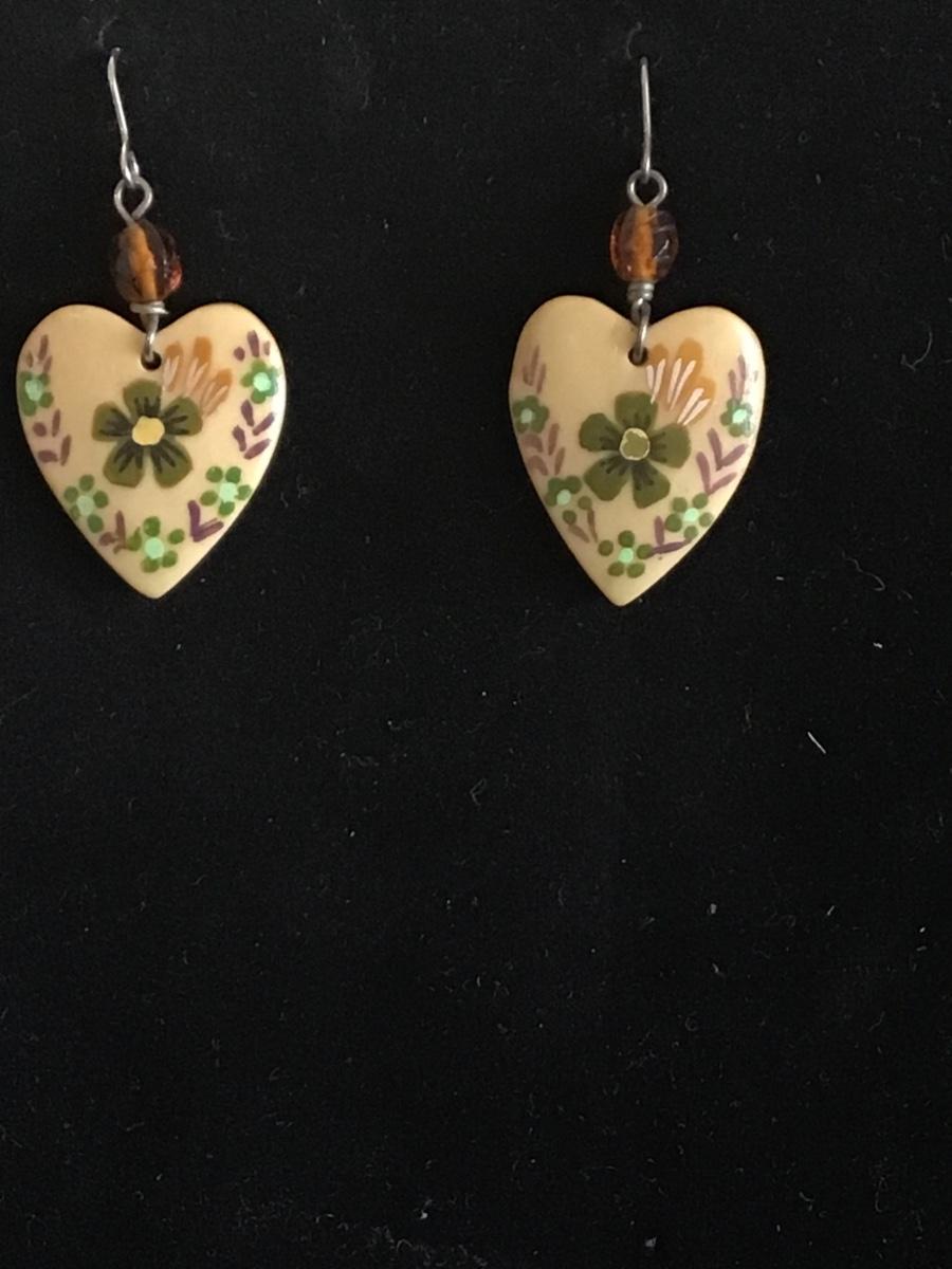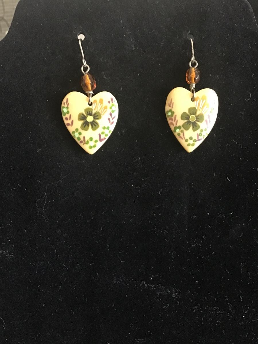 Vintage hand-painted Heart dangle earrings