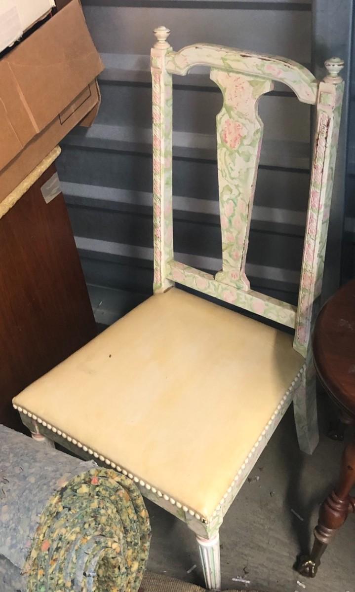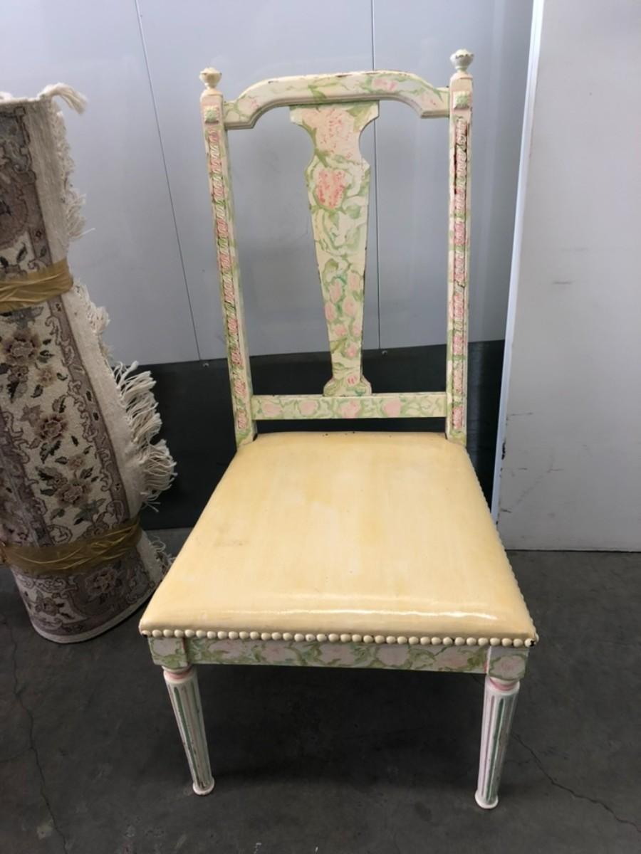 Vintage Hand-painted low chair. Pink & green. Legs have been cut to lower the chair. Great for a child's bedroom or playroom.