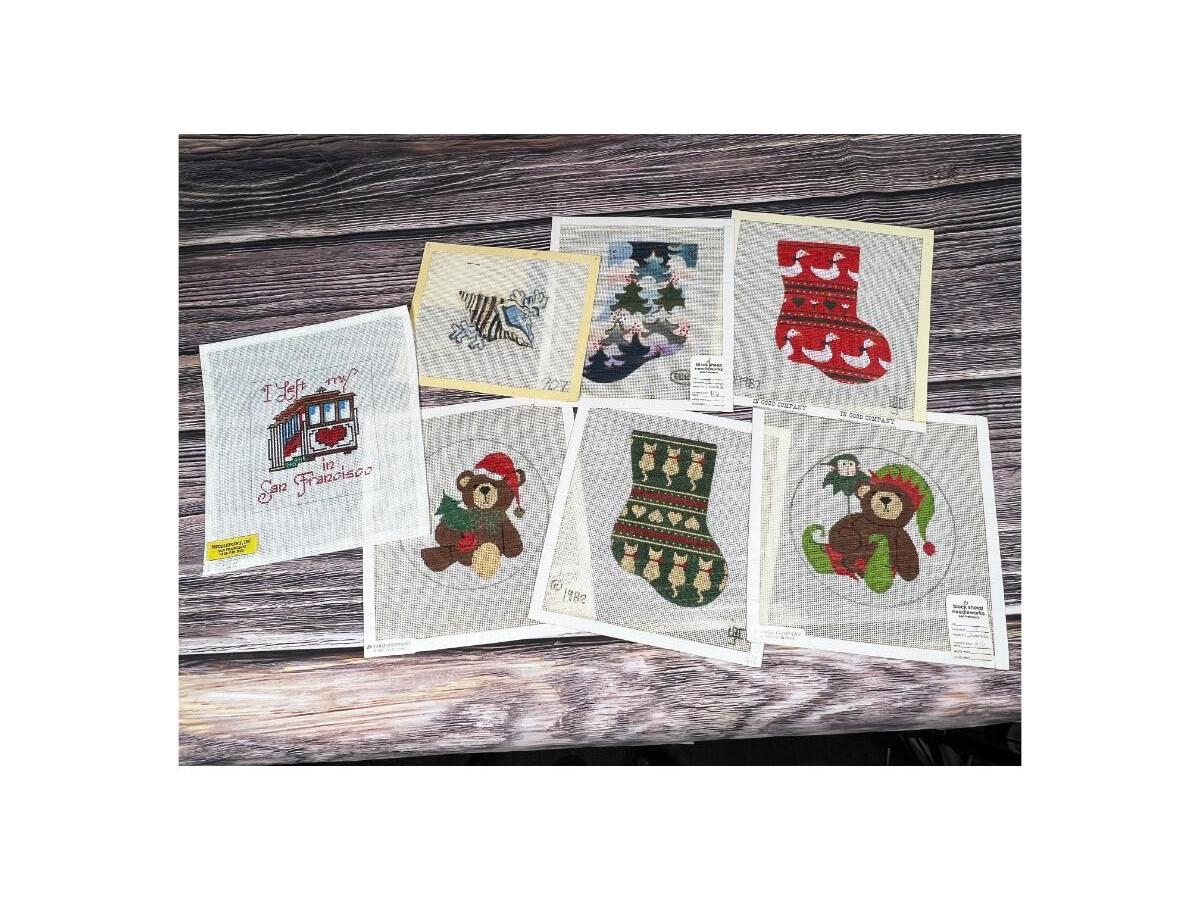 Vintage Handpainted Needlepoint Designs San Francisco Trolley, Christmas Stockings, Nautical Shells, & More