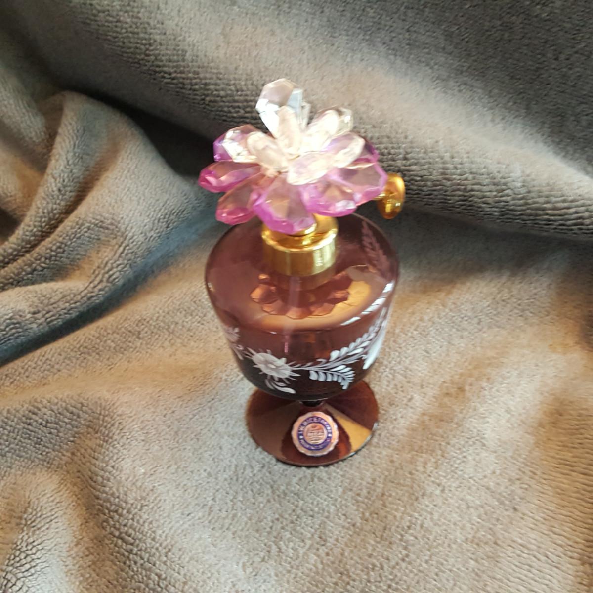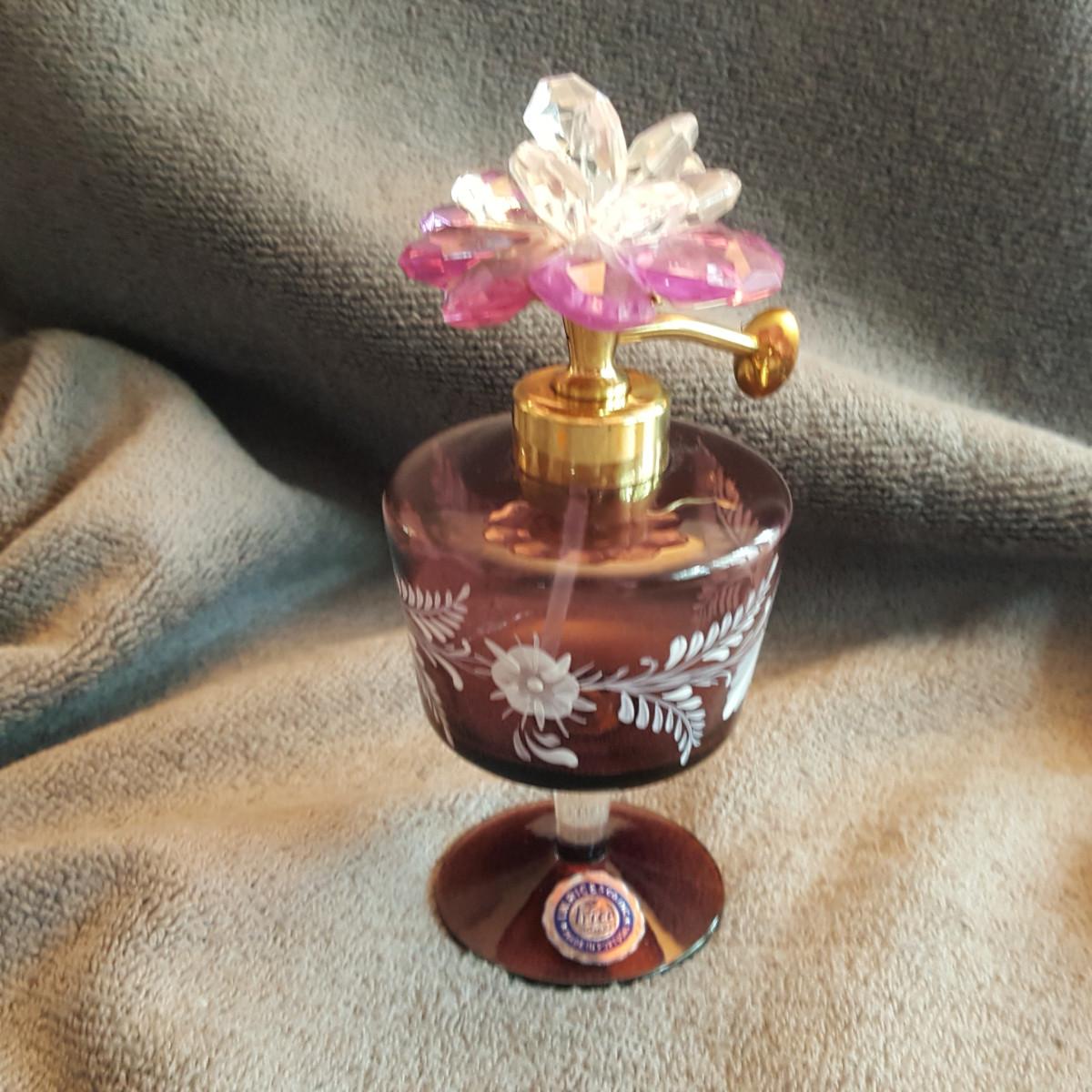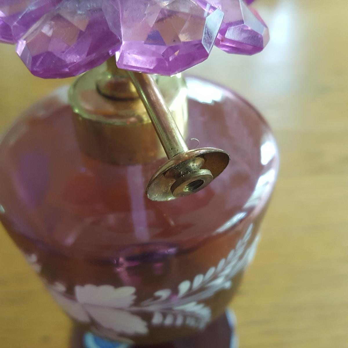 This auction lot is for a Vintage Hand-Painted Perfume Atomizer. This beautiful atomizer is missing the air puffing ball that would be connected to the extended metal piece - see photo. Hand-painted and made in Portugal - a very nice piece to sit and look pretty on a dressing table or shelf.