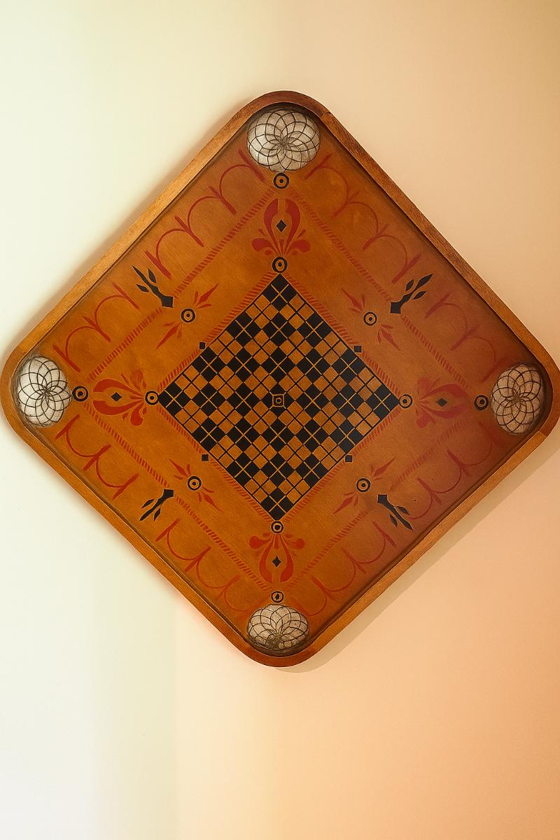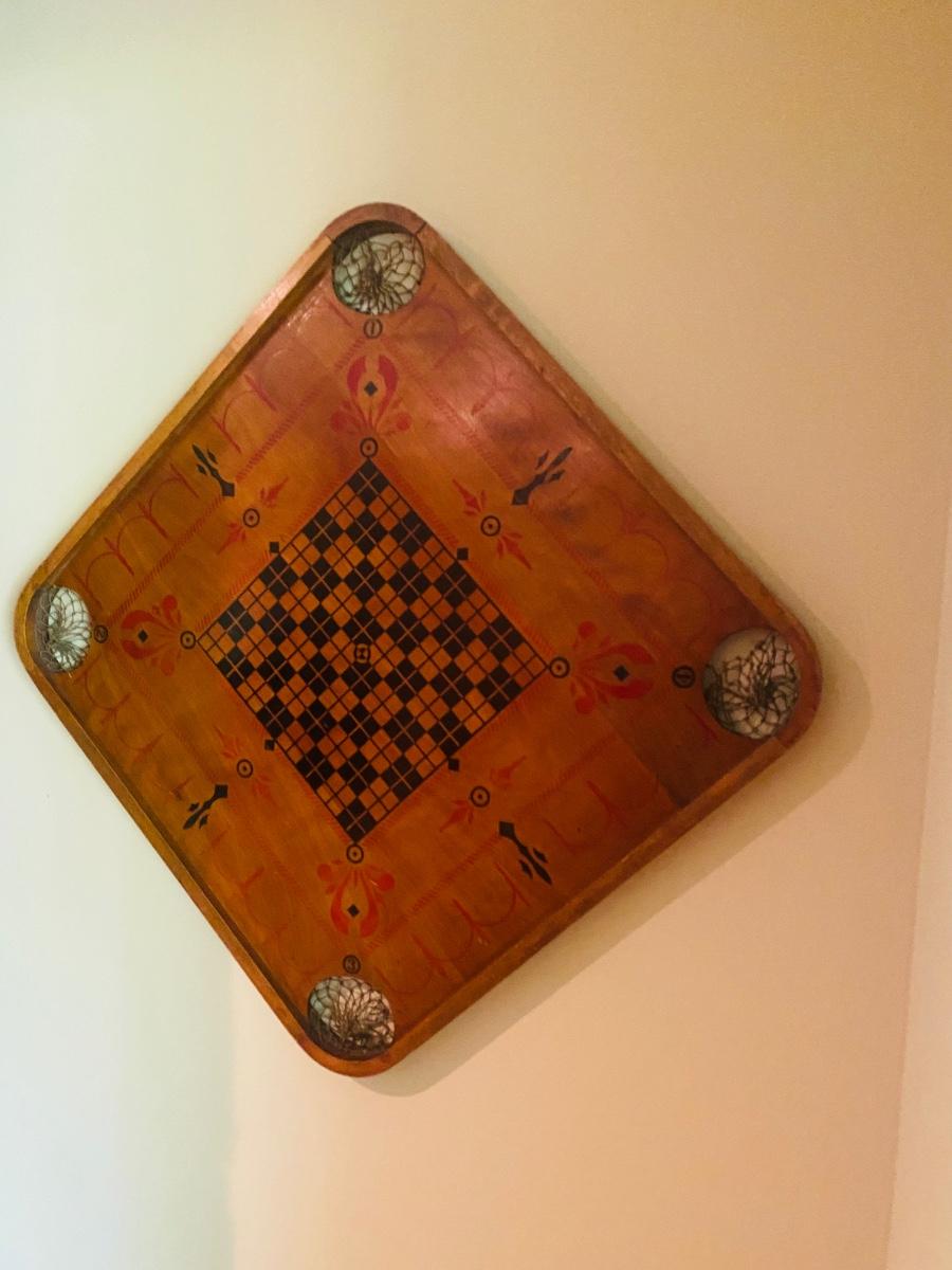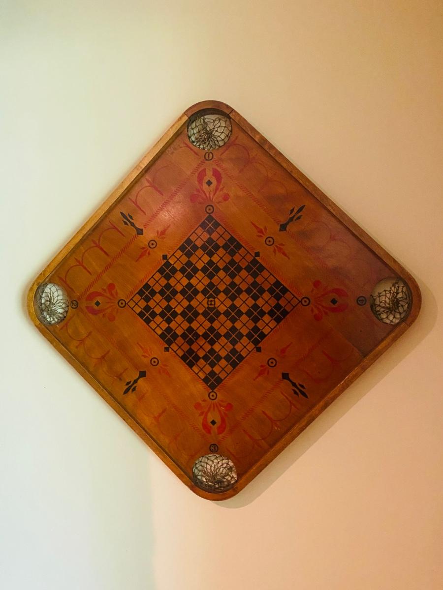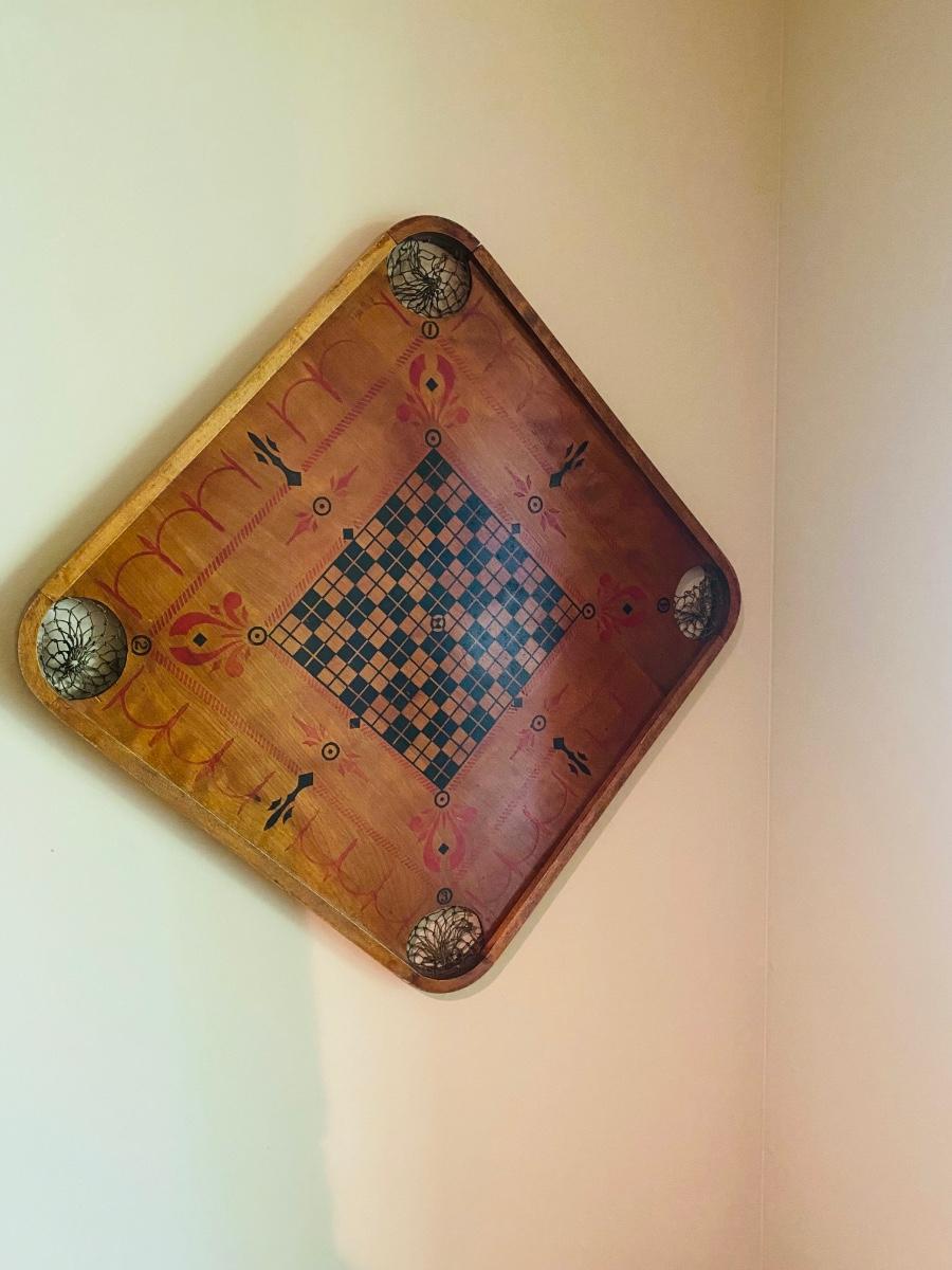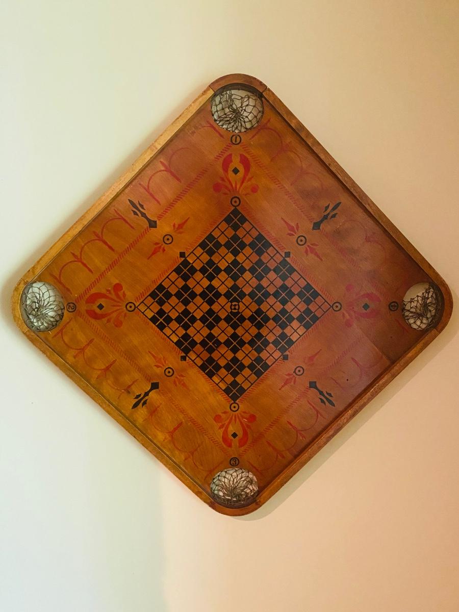 Vintage Hand-Painted Wooden Game Board – Carrom & Checkers Wall Art
