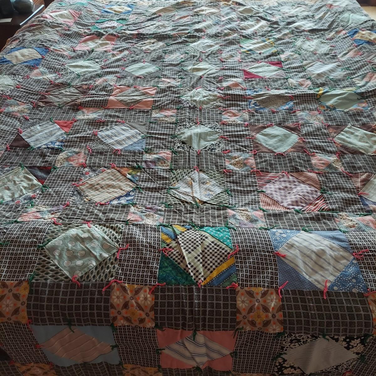 Incredible vintage quilt. Appears to have machine sewn blocks but was finished and quilted by hand. Measures 66” x 86”. In very good shape considering its age. Does not appear to have condition issues. Please see photos for details. Shipping available