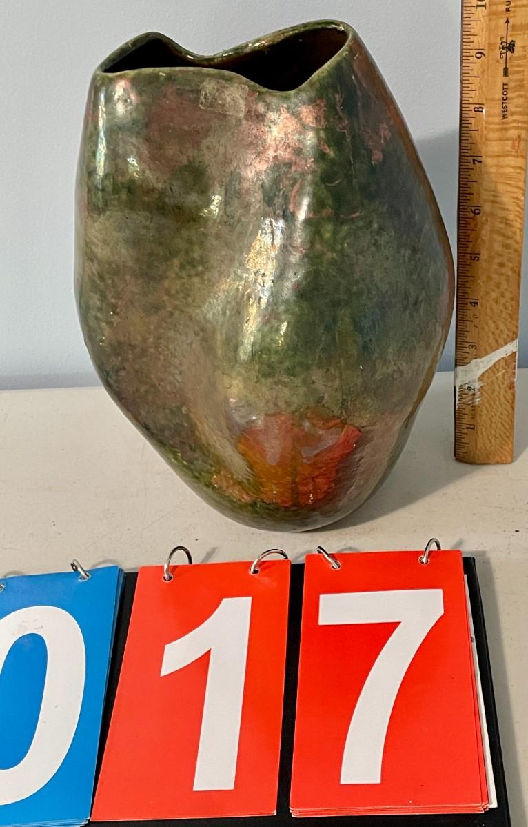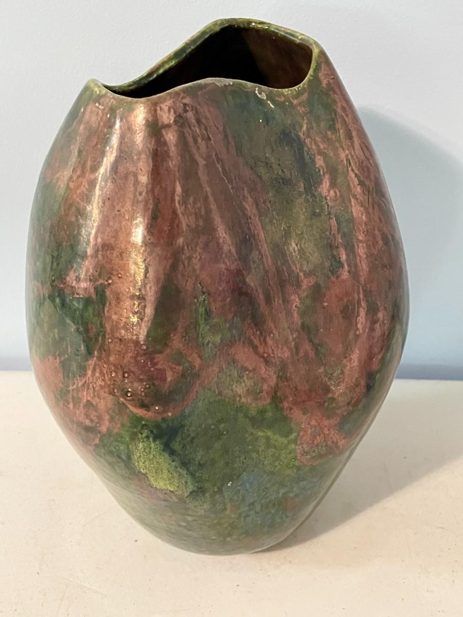 Vintage hand-thrown ripple vase by Carol Mitchell