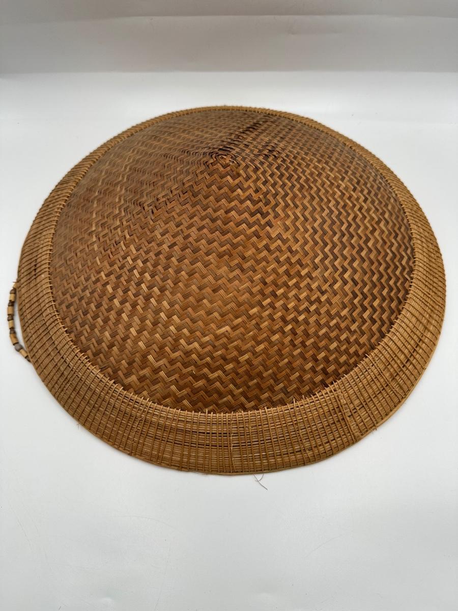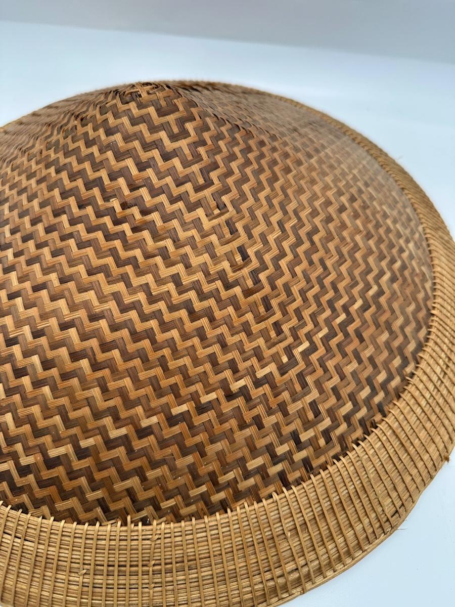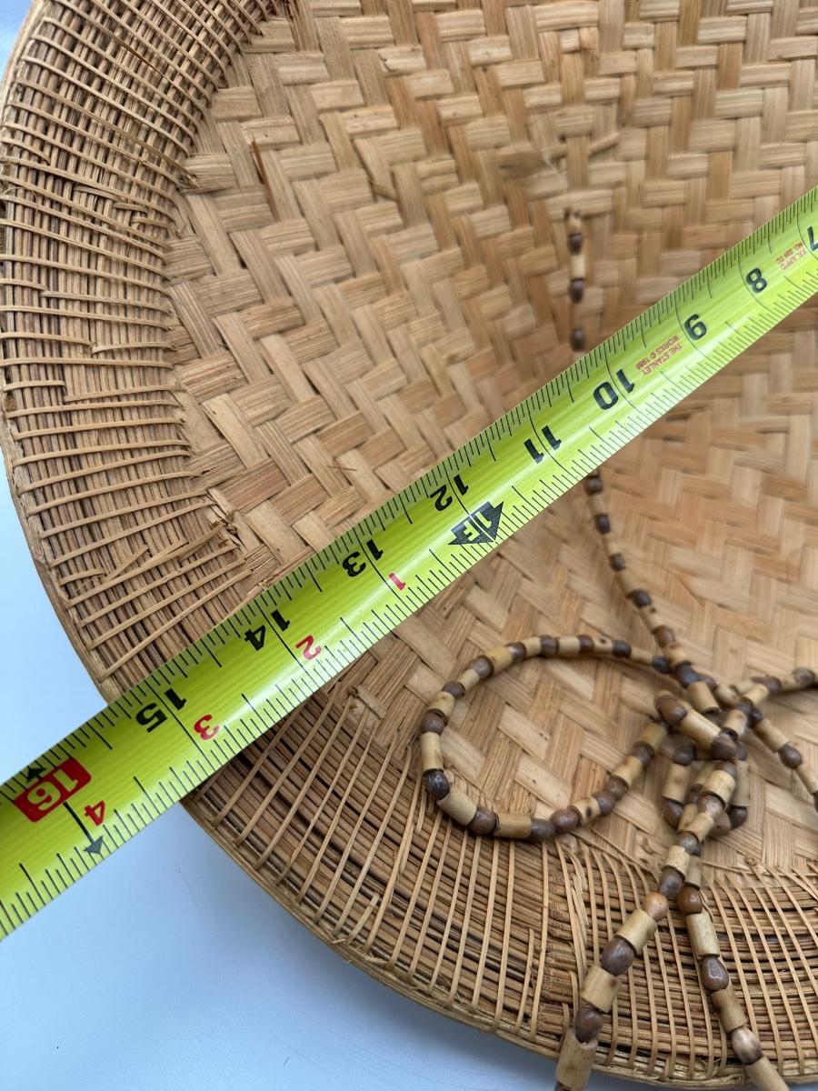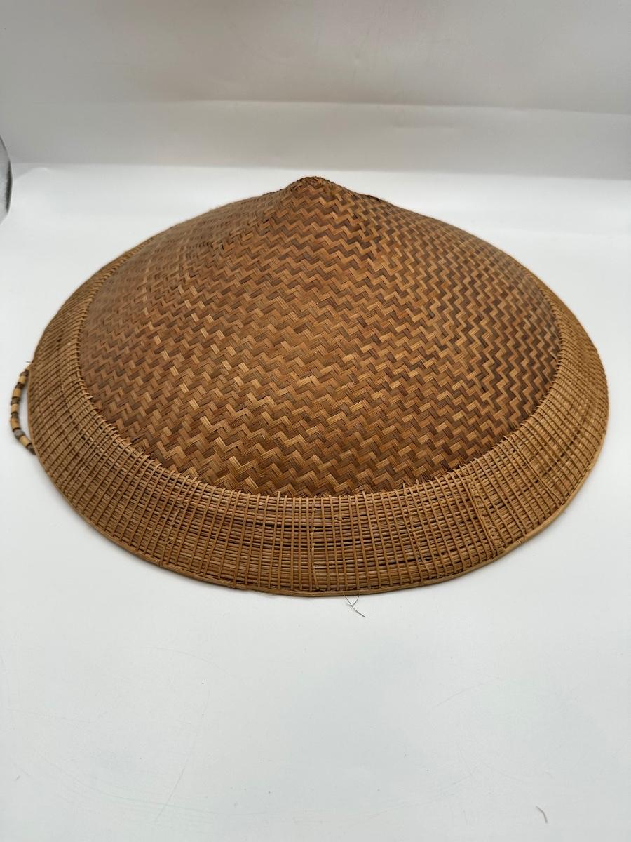 Vintage Handwoven Indonesian Conical Hat – Bamboo Wicker Rice Farmer Style with Beaded Chin Strap