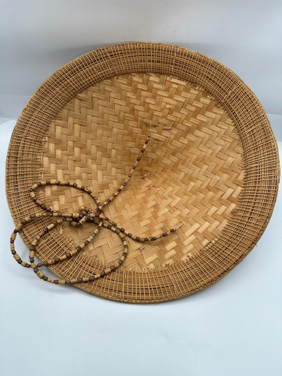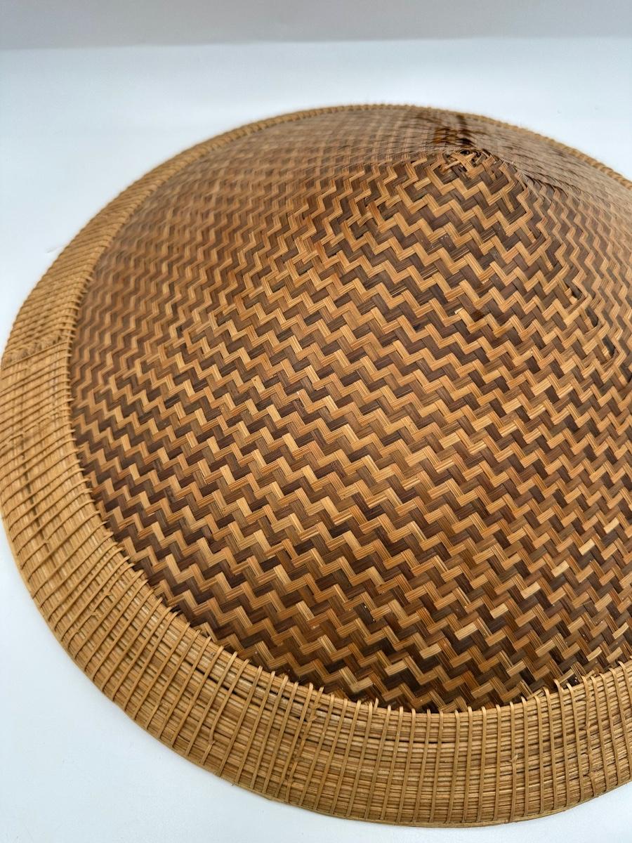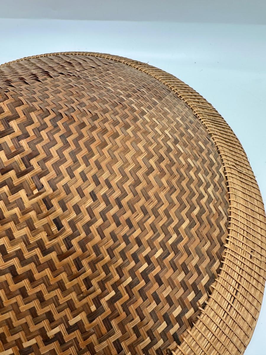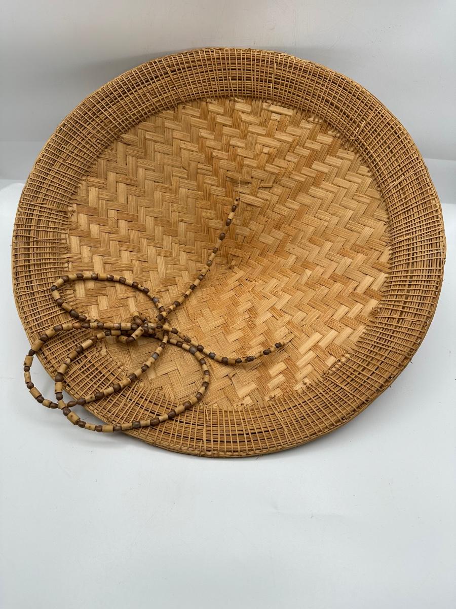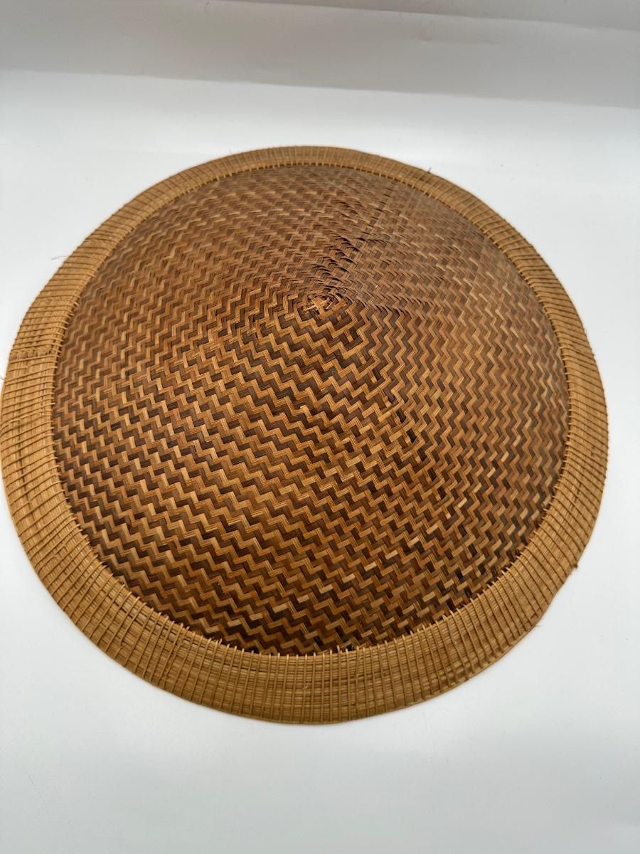 Vintage Handwoven Indonesian Conical Hat – Bamboo Wicker Rice Farmer Style with Beaded Chin Strap
