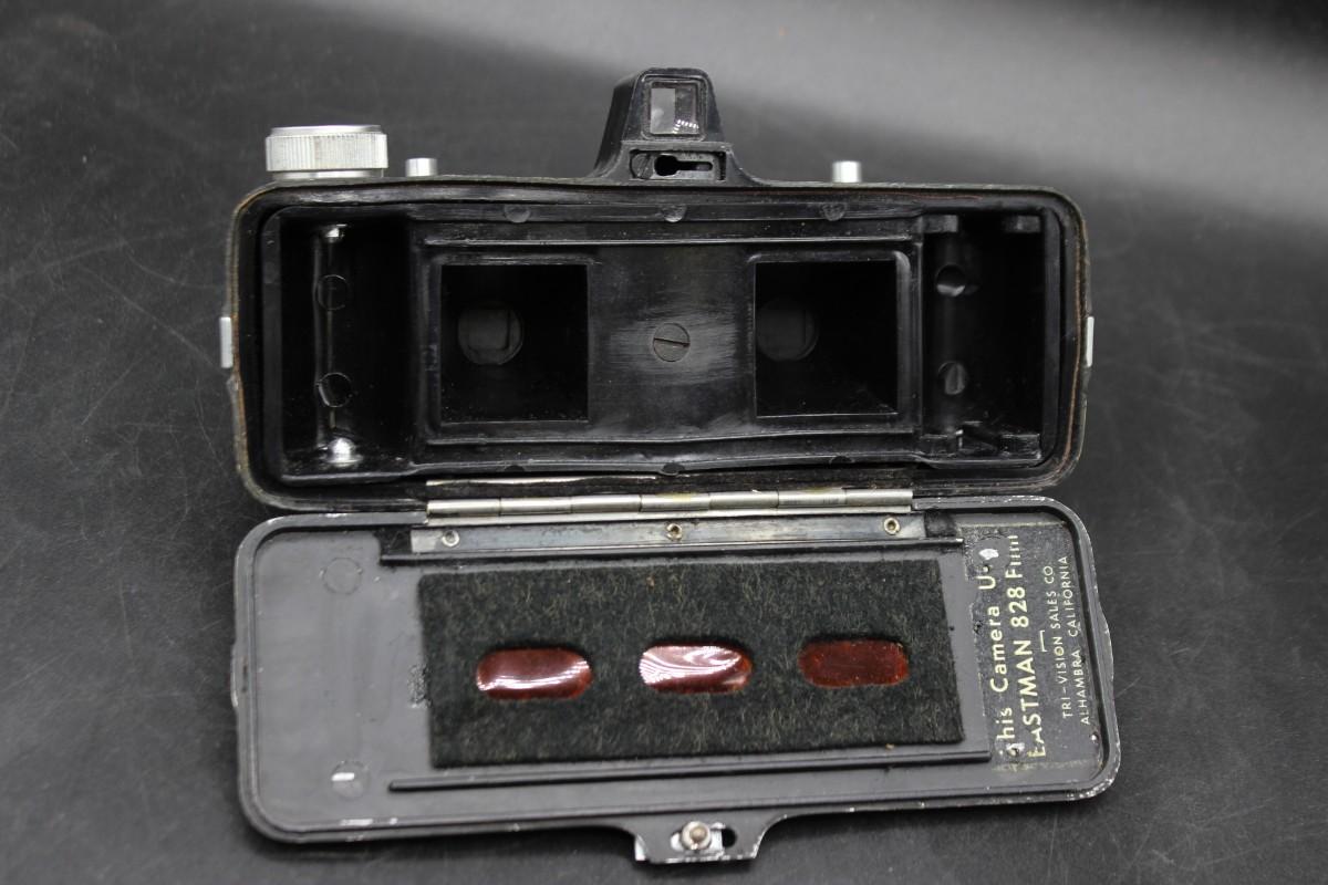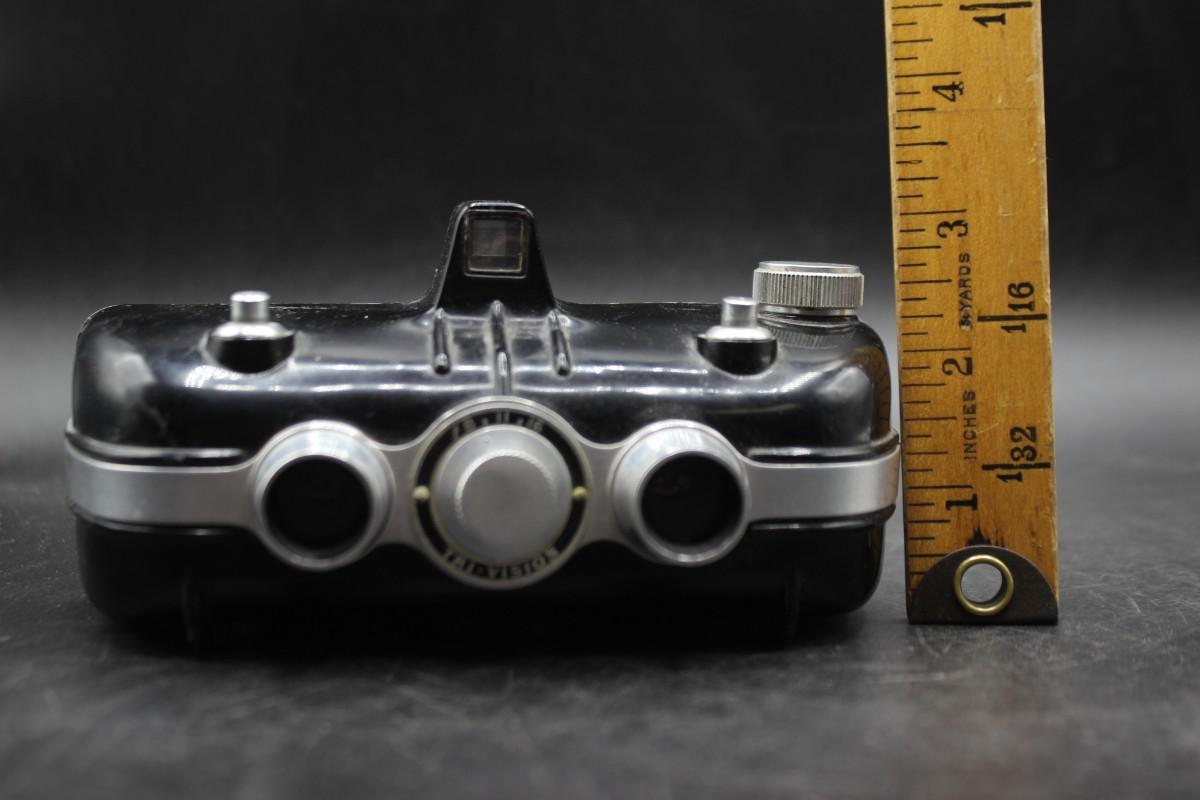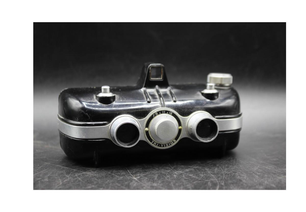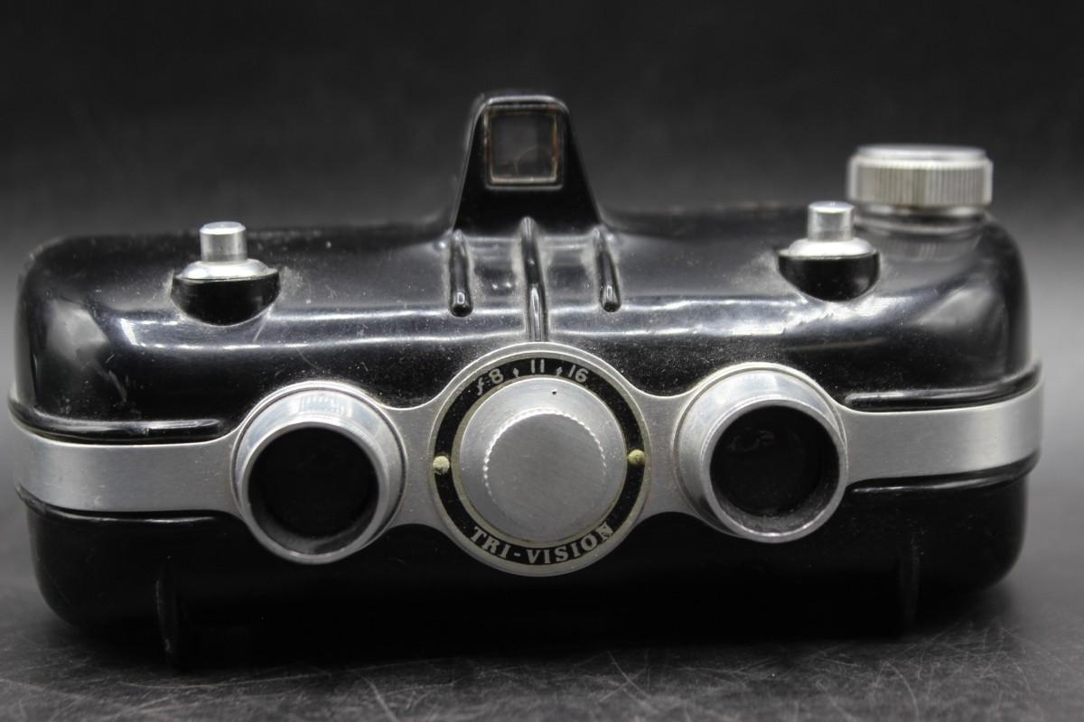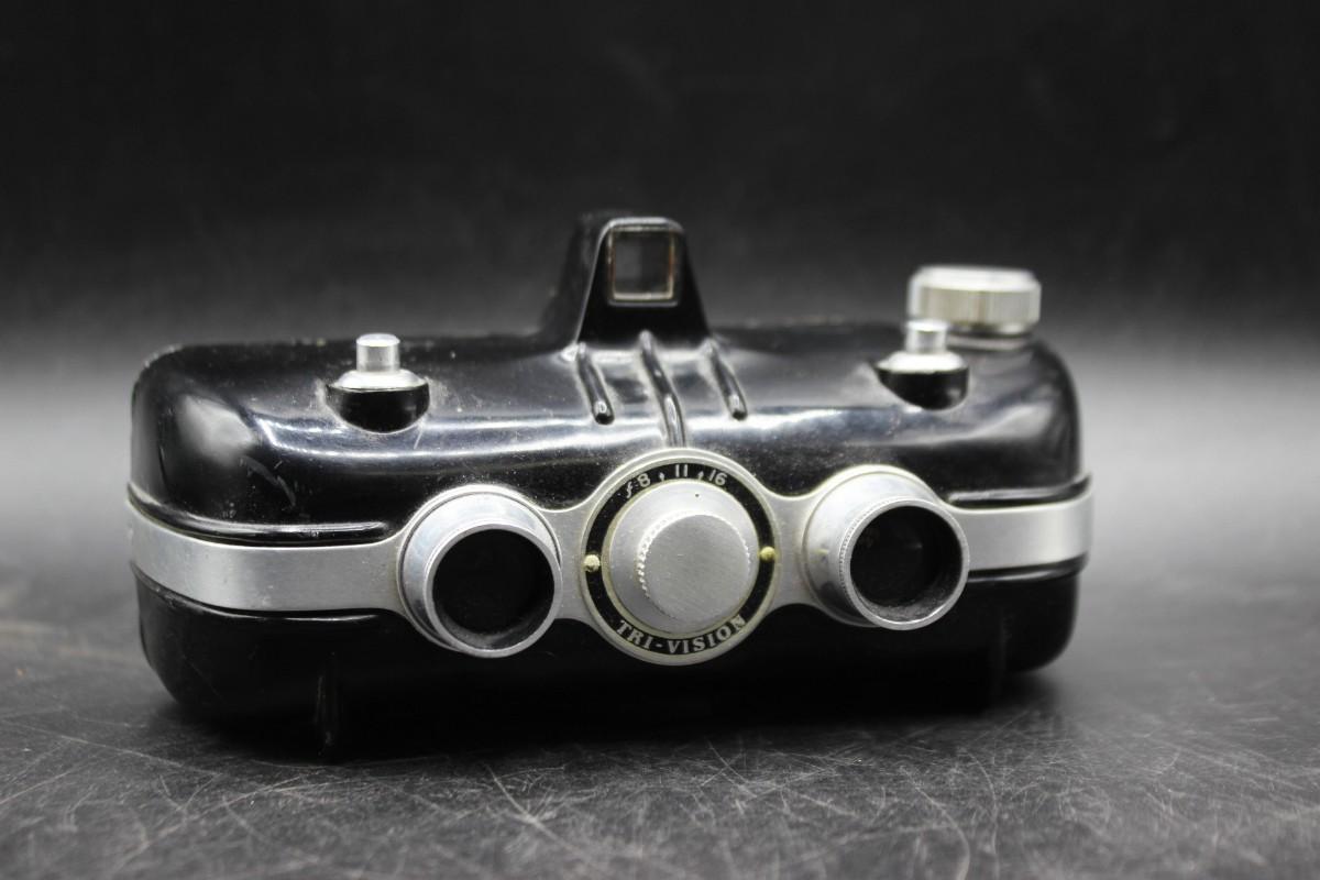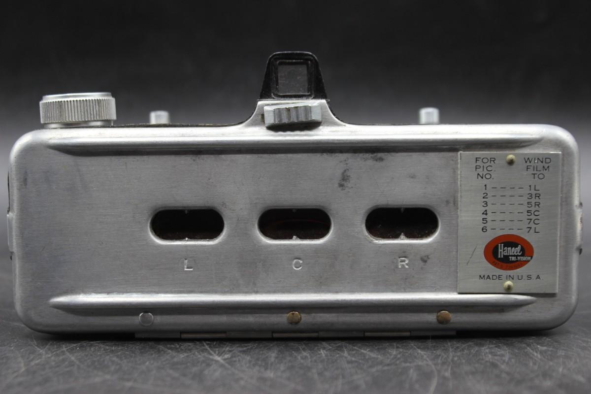 Vintage Haneel Tri-Vision Stereo Film Camera, there is no significant damage to the body of the camera and is in good vintage condition. Has not been tested, check pictures for more details and for sizing.