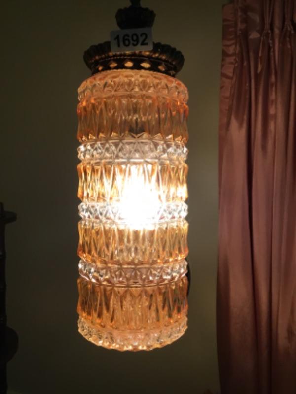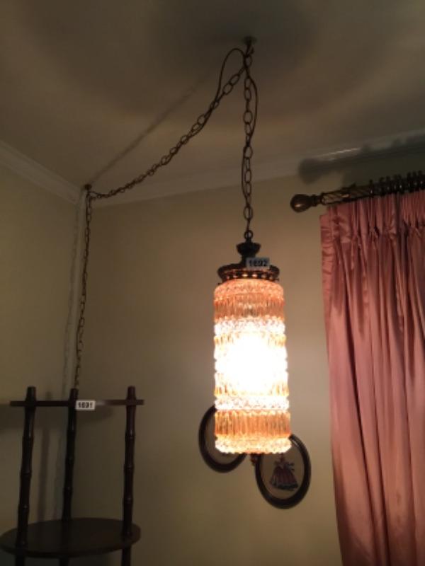 Vintage hanging glass lamp chandelier on chain lot 1692