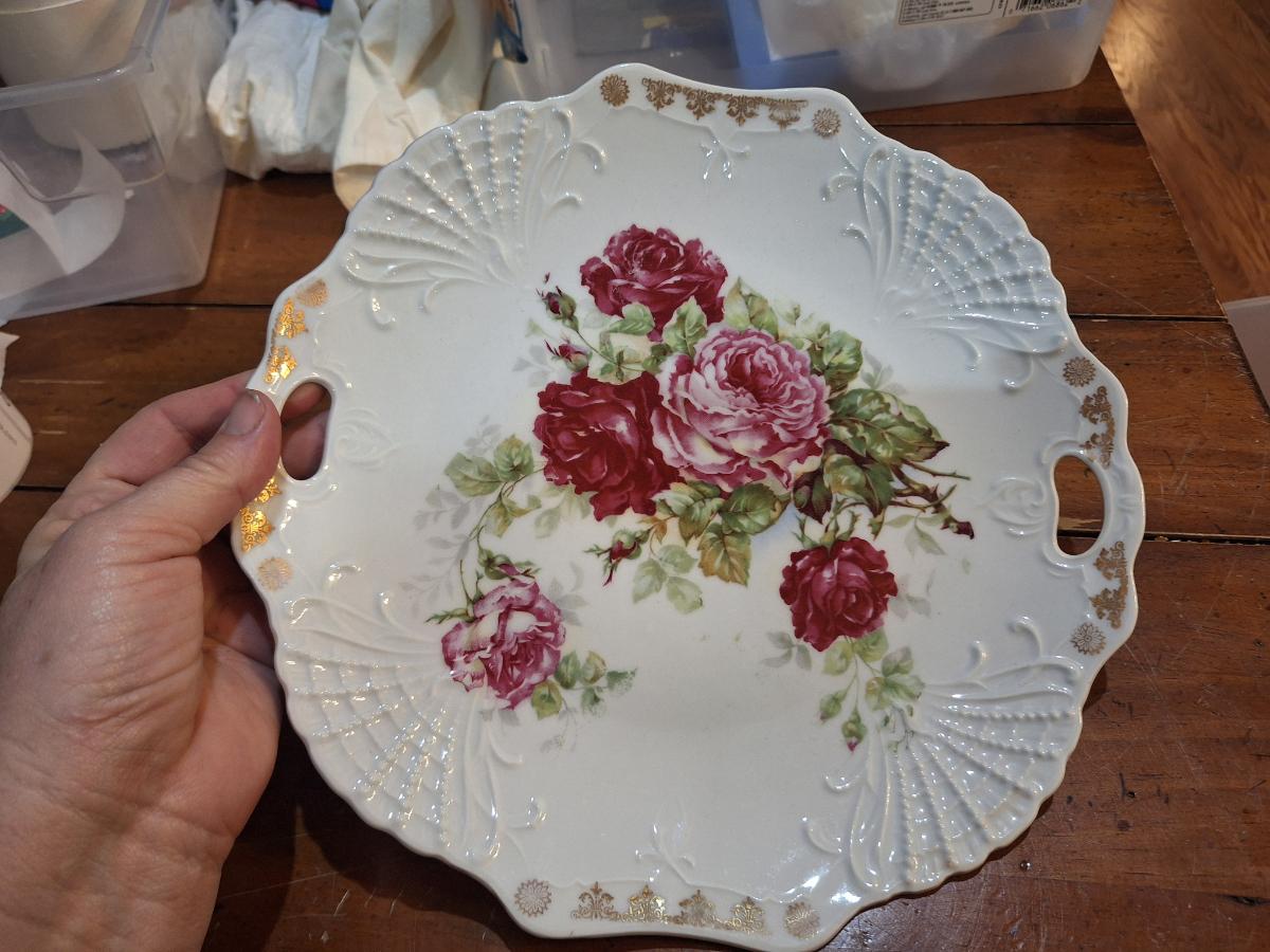 vintage hangled plate from Three Crown china company in Bavaria