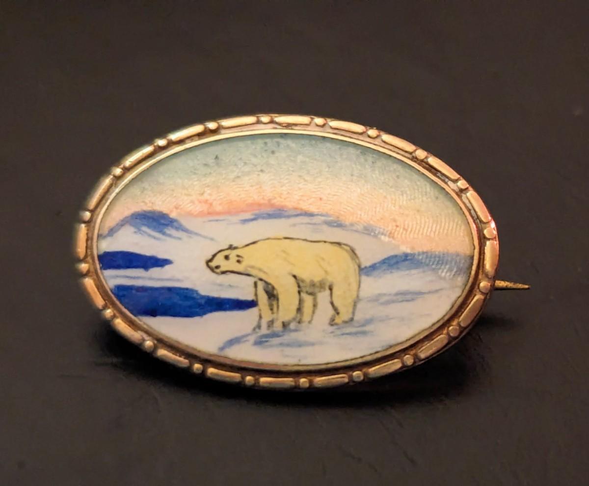 Vintage Hans Myhre Enamel and Sterling silver brooch Guilloché Northern Lights Polar Bear