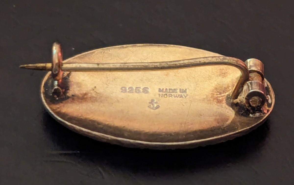 Vintage Hans Myhre Enamel and Sterling silver brooch featuring a Polar Bear